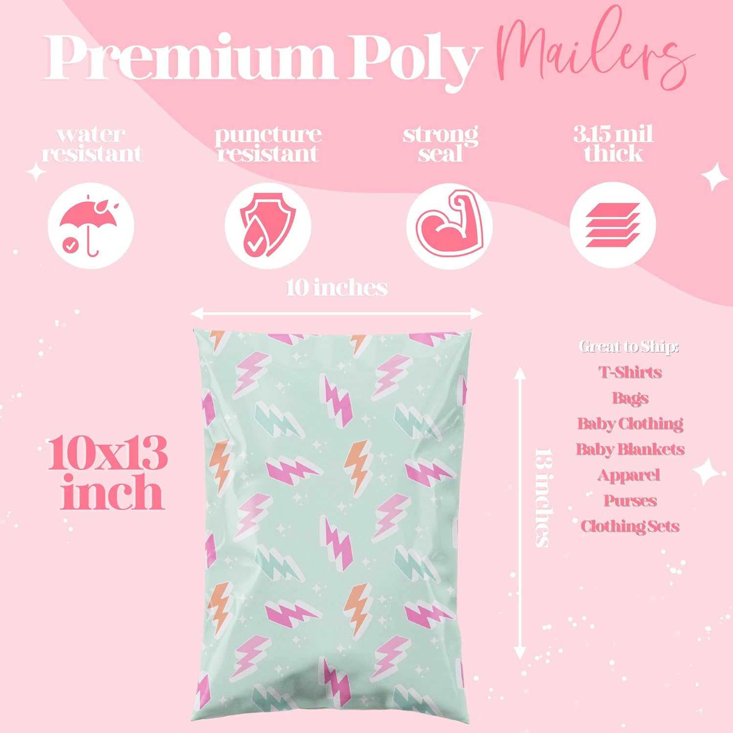 6x9 Designer Poly Mailer 100 Pack Heavy Duty Waterproof Self Seal Shipping Bags for Small Business Large Mailing Envelopes Bulk Tear Resistant Cute Packaging Lightning Bolt
