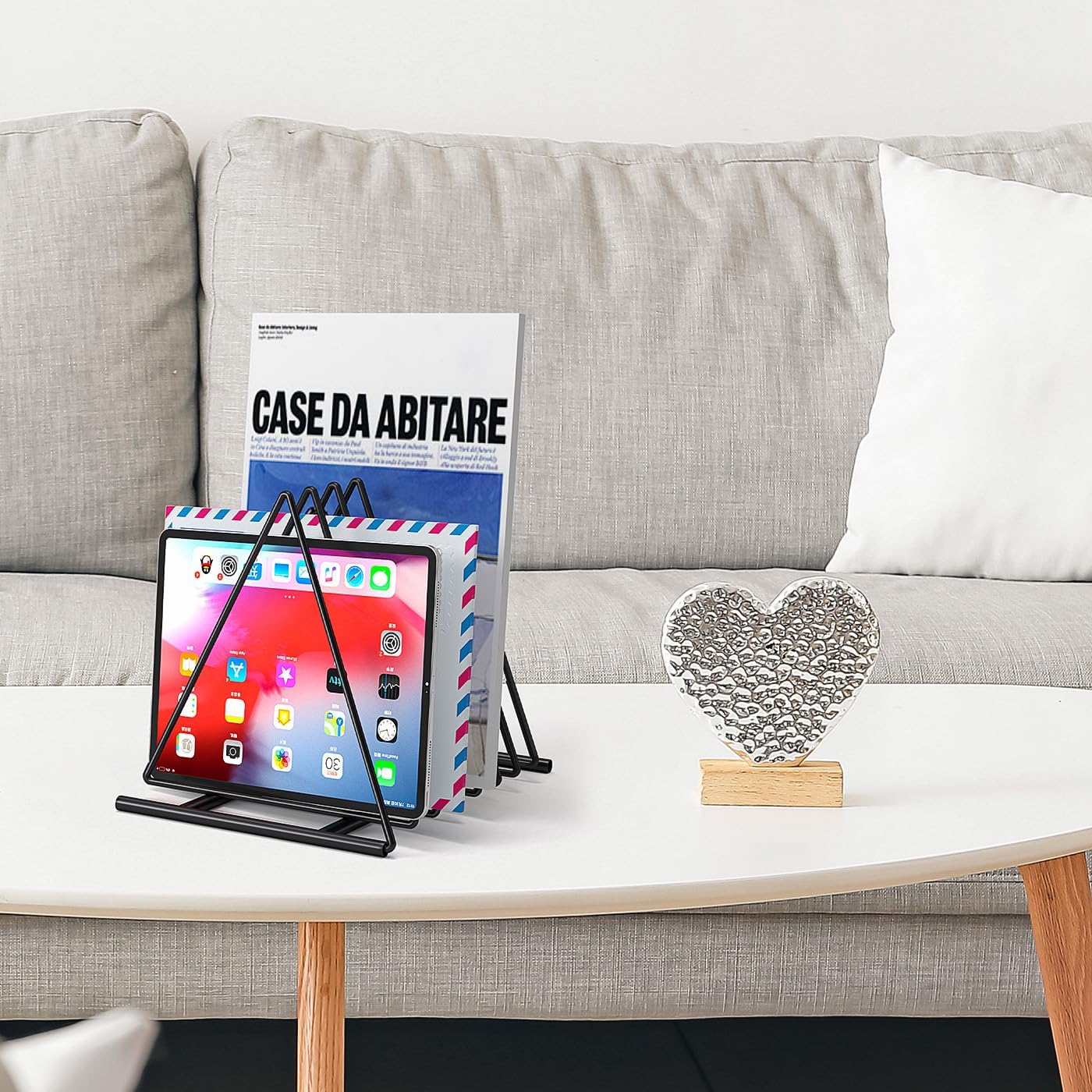 - This nordic-style magazine rack combines practicality and decoration. Different from triditional bookshelves,it is not only book rack but also a stylish ornament,it can be used for decoration,photography and special art.This file organizer holder features a simple Nordic style,with a fashionable shape and smooth line design,presenting a clean and elegant look.