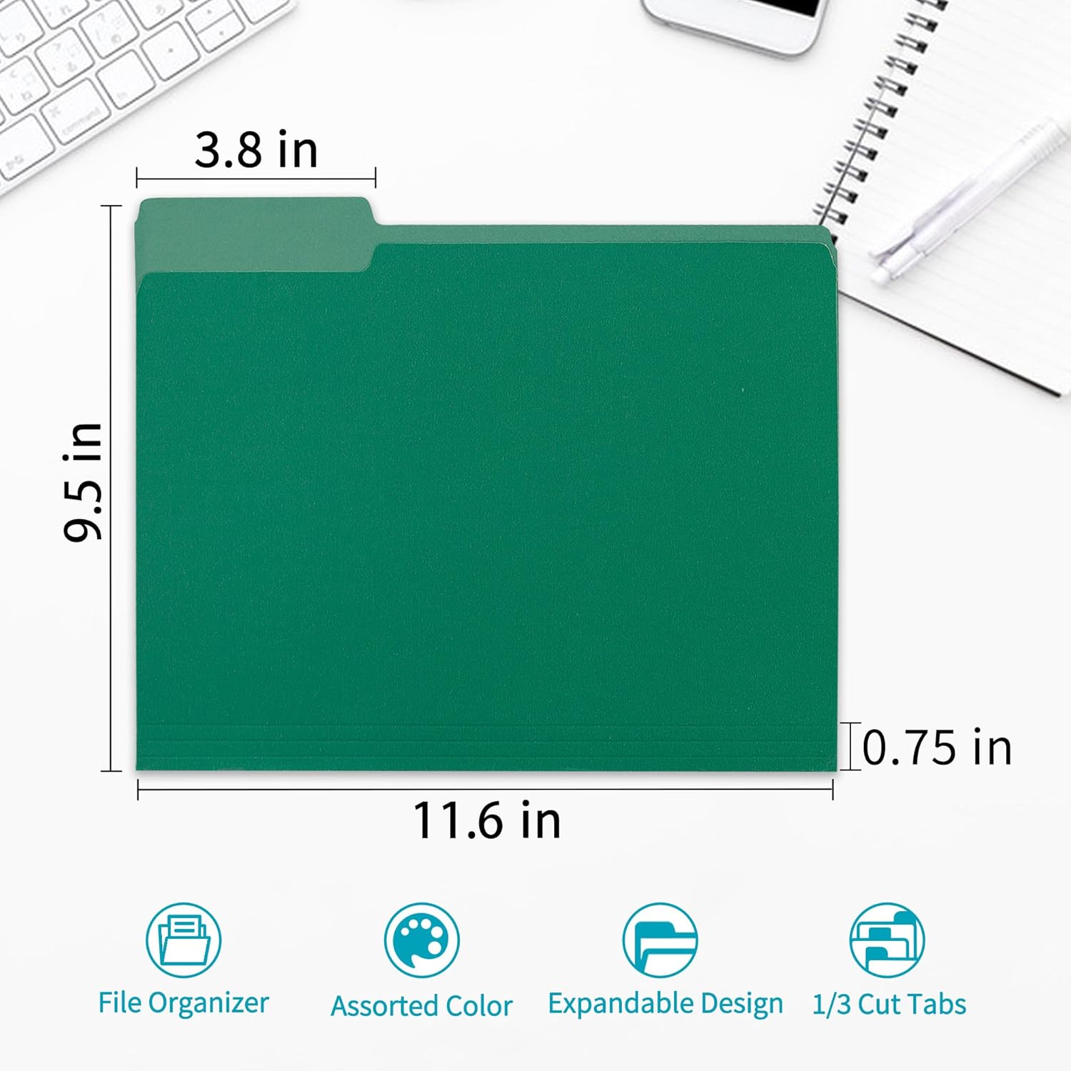 100 Packs Colored File Folders,Green File Folders,Two Tone Color File Folder 8.5 x 11 Inch,1/3 Cut Tabs Letter Size,Manila File Folders for Office,School and Home,Organization