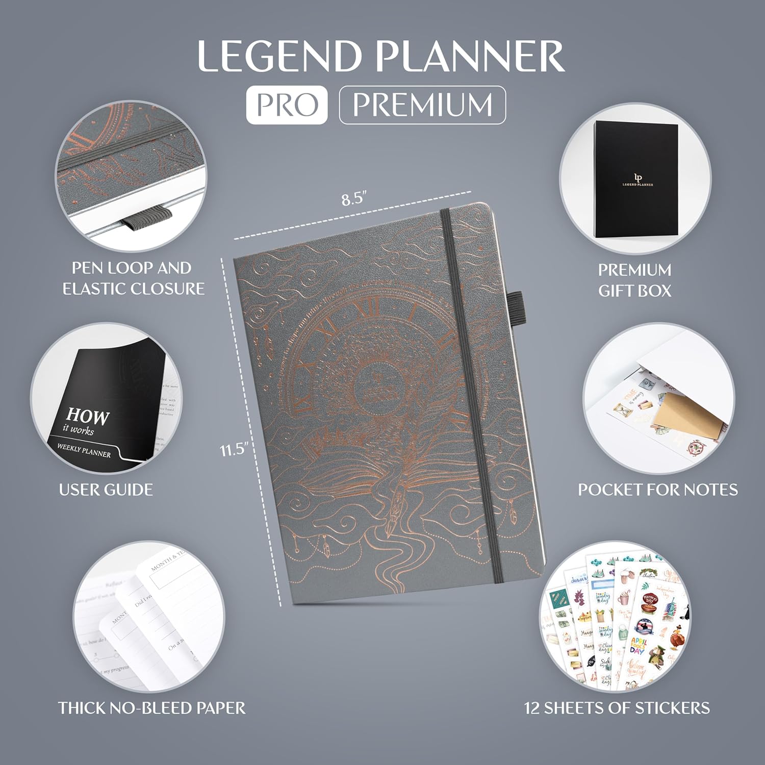- PREMIUM LARGE-FORMAT PLANNER FOR THE ULTIMATE PLANNING EXPERIENCE - Legend Planner Premium comes with an elegant gift box, 12 sheets of planning stickers, and a detailed user guide to ensure you get the most out of using it.