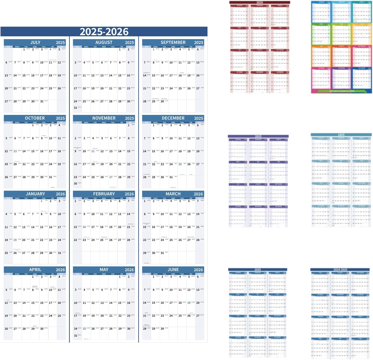 2025-2026 Wall Calendar 34.8" x 22.8" Large Vertical Yearly Wall Hanging Calenda with Julian Date from July 2025 to June 2026 Thick Paper Calendar 12 Month Annual Planner for Office Fridge(Grayish Blue)