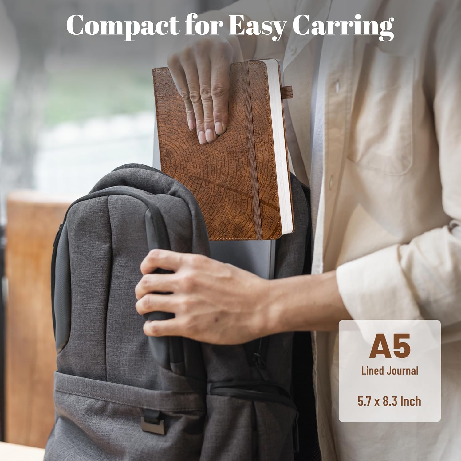 CAGIE Lined Journal for Men Women, Tree Growth Ring Leather Bound Journal Notebook, 256 Pages 100 GSM Journals for Writing, A5 Hardcover Journaling Notebooks for Work, Note Taking