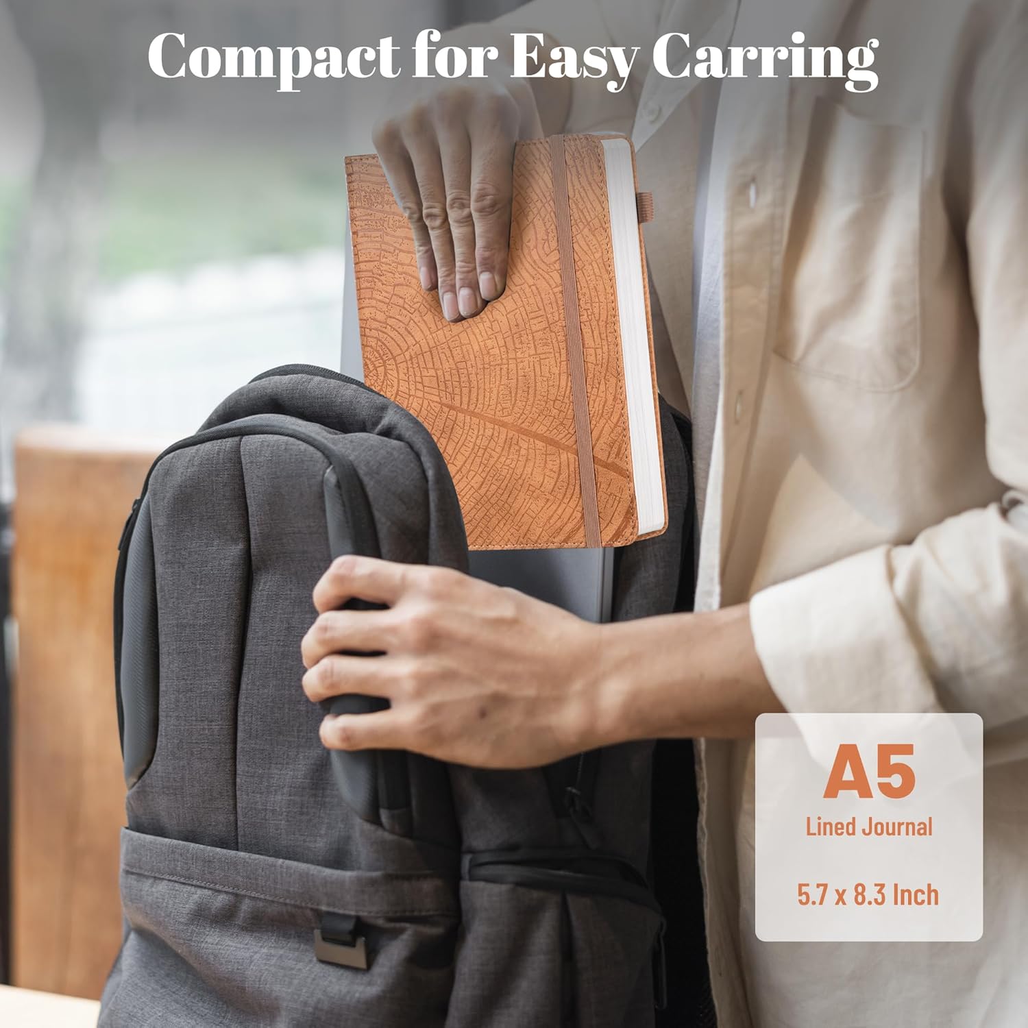 - ššš šš§ ššššš”šš« ššØš®š§š ššØš®š«š§šš„:The cover features a tree growth ring pattern, lightly debossed onto cruelty-free vegan leather. The textured cover adds visual interest and sets it apart from plain designs. The tree ring pattern represents personal growth, accomplishments, and the challenges along the way. 5.7 Ć 8.3 inches, compact and easy to carry