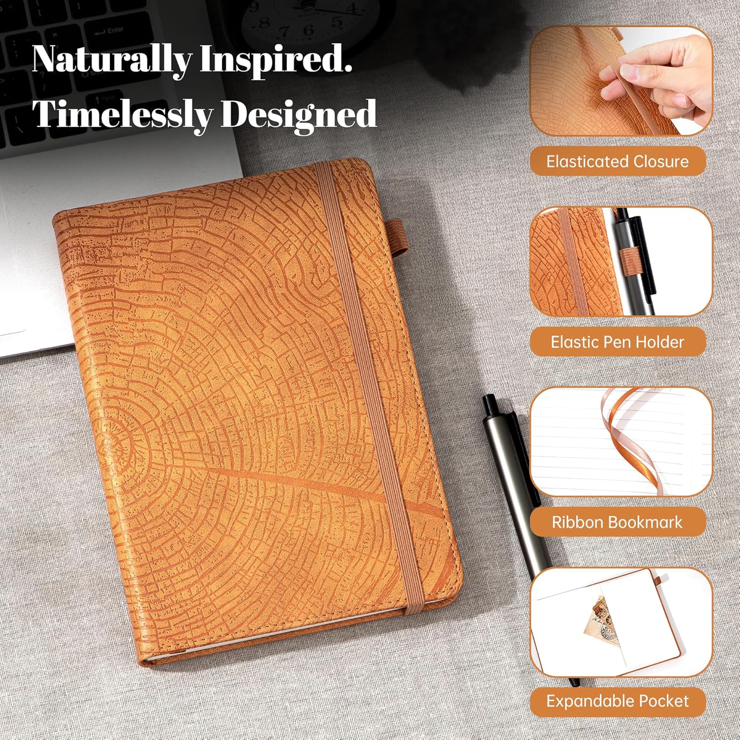 CAGIE Lined Journal for Men Women, Tree Growth Ring Leather Bound Journal Notebook, 256 Pages 100 GSM Journals for Writing, A5 Hardcover Journaling Notebooks for Work, Note Taking