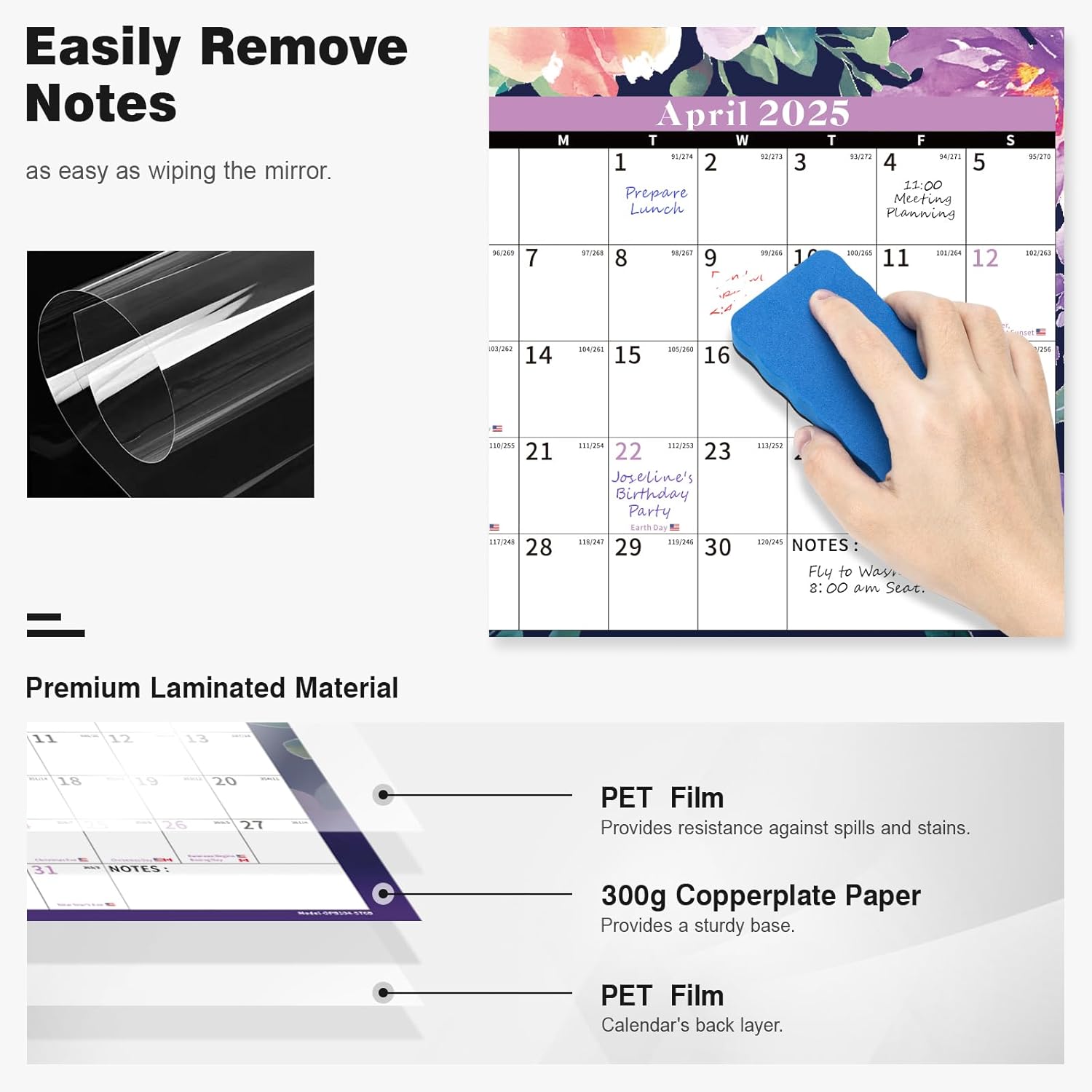 - ⨠Dry Erase Wall Calendar : is made of PET Film and 300 grams Copperplate Paper, providing a durable surface that resists scratches and smudges, while the sturdy Copperplate Paper backing keeps it in place without curling.