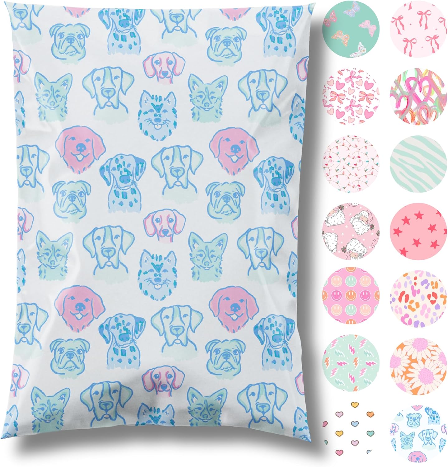 10x13 Designer Poly Mailer 100 Pack Heavy Duty Waterproof Self Seal Shipping Bags for Small Business Large Mailing Envelopes Bulk Tear Resistant Packaging Pretty Pups Puppy Dogs