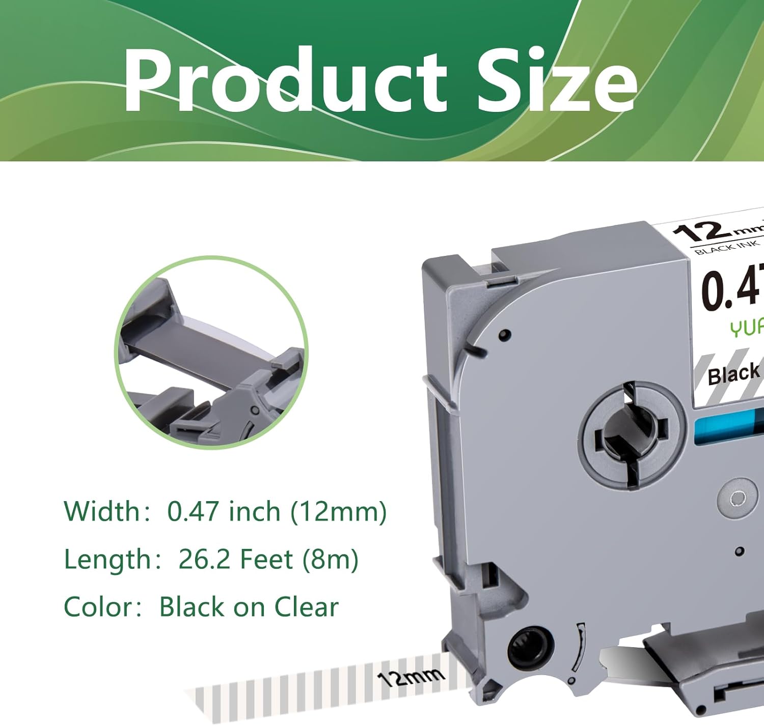 • Color: black on clear, Width: 1/2 inch (12mm 0.47 inch), Length: 26.2 feet (8 m) for each laminated label clear tape
