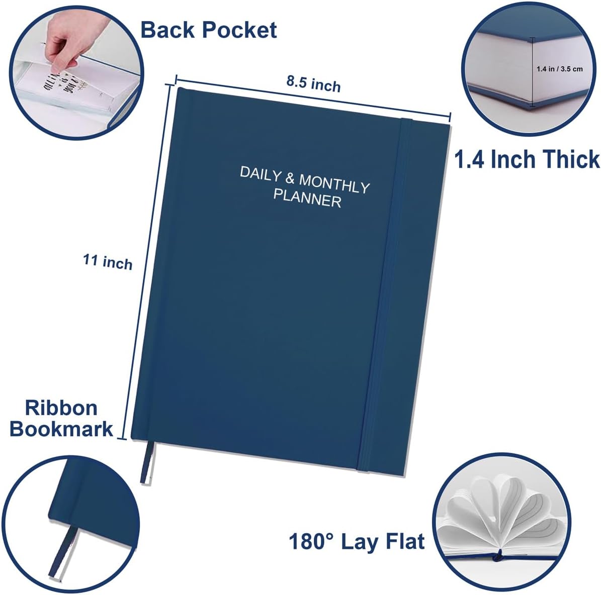 Daily & Monthly Planner for 2025 2026 or Anytime - ADHD Planner Two Pages Per Day, Daily Planner Undated to Increase Focus, Eliminate Overwhelm, Achieve Your Biggest Goals, 8.5'' × 11'', Blue