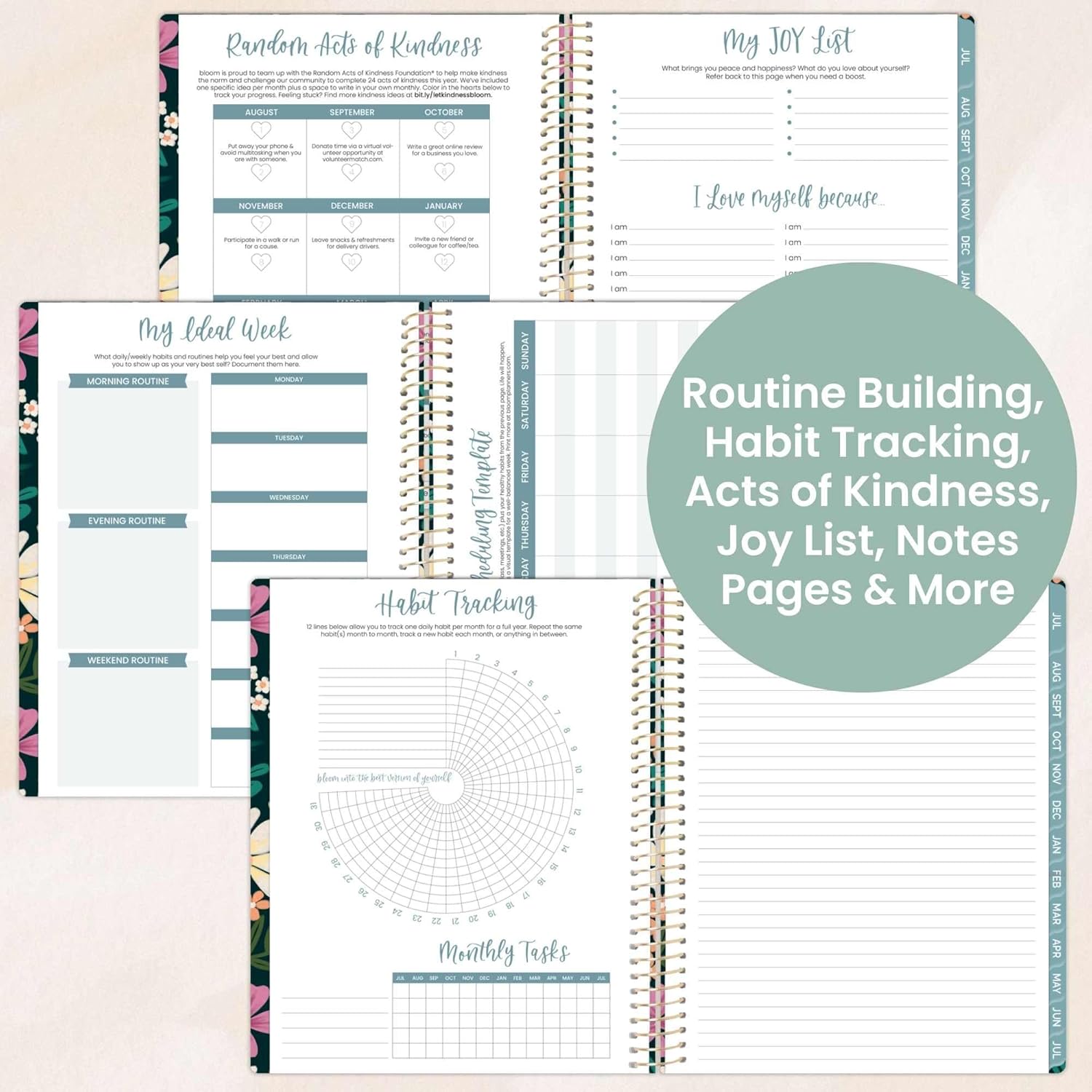 - 8.5” x 11” WITH HORIZONTAL WEEKLY LAYOUT & MONTHLY VIEWS: 2 page monthly overview spreads and spacious weekly views run Academic Year, July 2025 through July 2026. Weekly views are horizontal and include priority & habit tracking.
