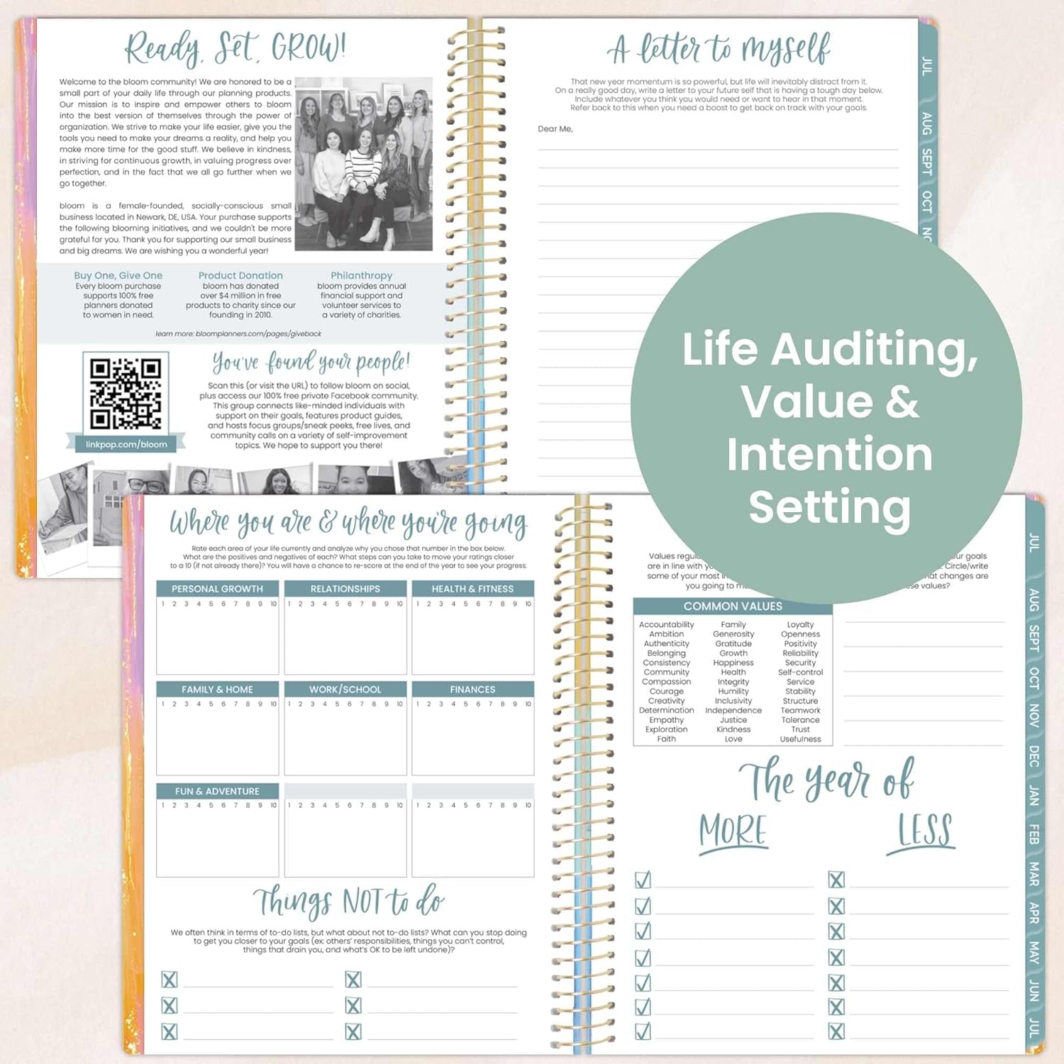 • EXTRA TOOLS FOR PERSONAL GROWTH: This office essential comes packed with life coaching worksheets and productivity tools to keep you motivated: a personal mission statement prompt, yearly goal-setting page, weekly scheduling template, habit tracker, vision board, monthly budget log, 13 note pages, inspirational quotes, monthly challenges, and more.