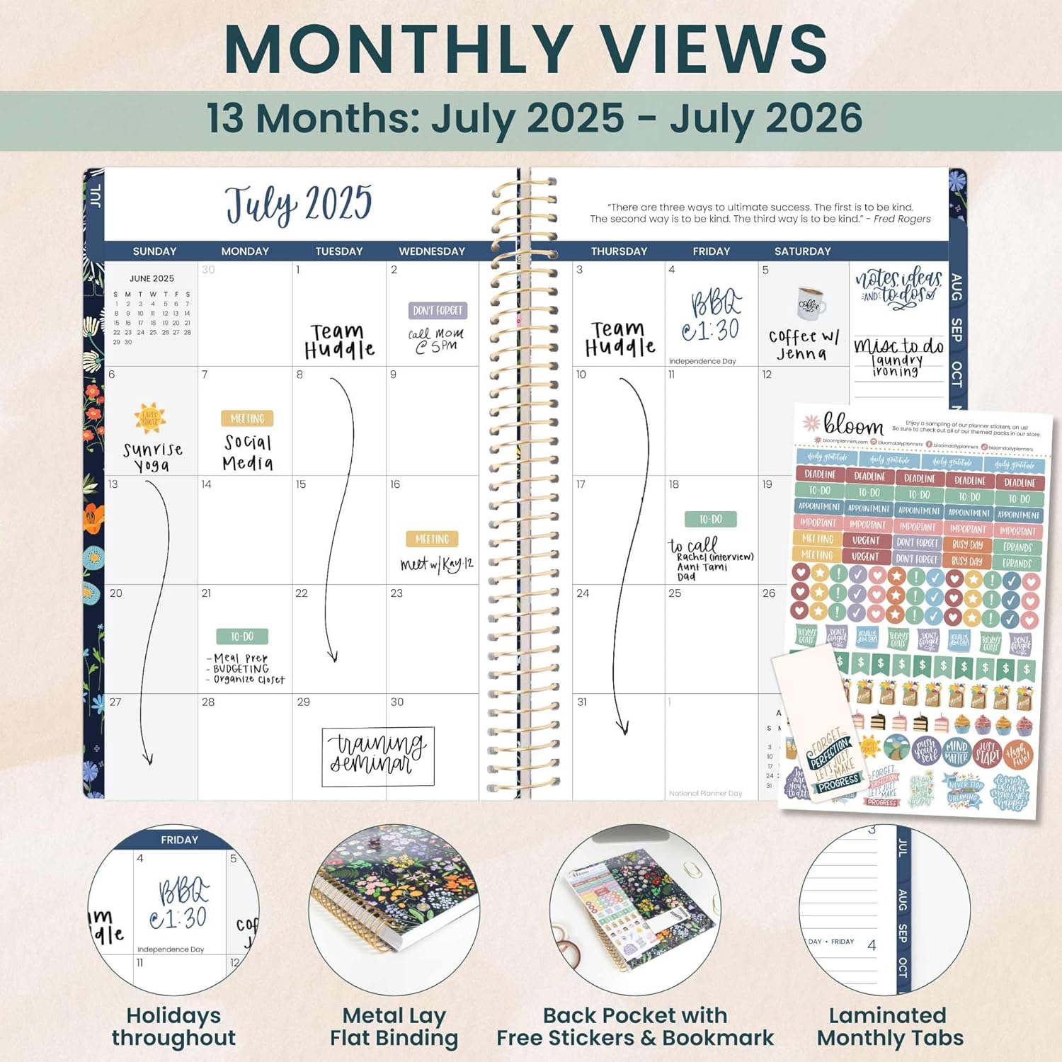 - STAY ORGANIZED WITH A BLOOM PLANNER 2025-2026 FOR WOMEN! This beautifully designed weekly and monthly planner helps you manage your schedule with ease. Choose from 15 stylish cover optionsācheck the Product Description or visit our store for more designs and inspiring office essentials.