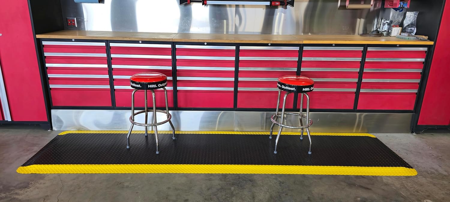 Rhino Mats, American Classic Diamond Anti-Fatigue Mats, Industrial Ergonomic Comfort Standing Mat for Work, Home, Garage, Office, Kitchen or Anywhere (Black/Yellow 9/16" Thick, 2 FT. x 20 FT.)
