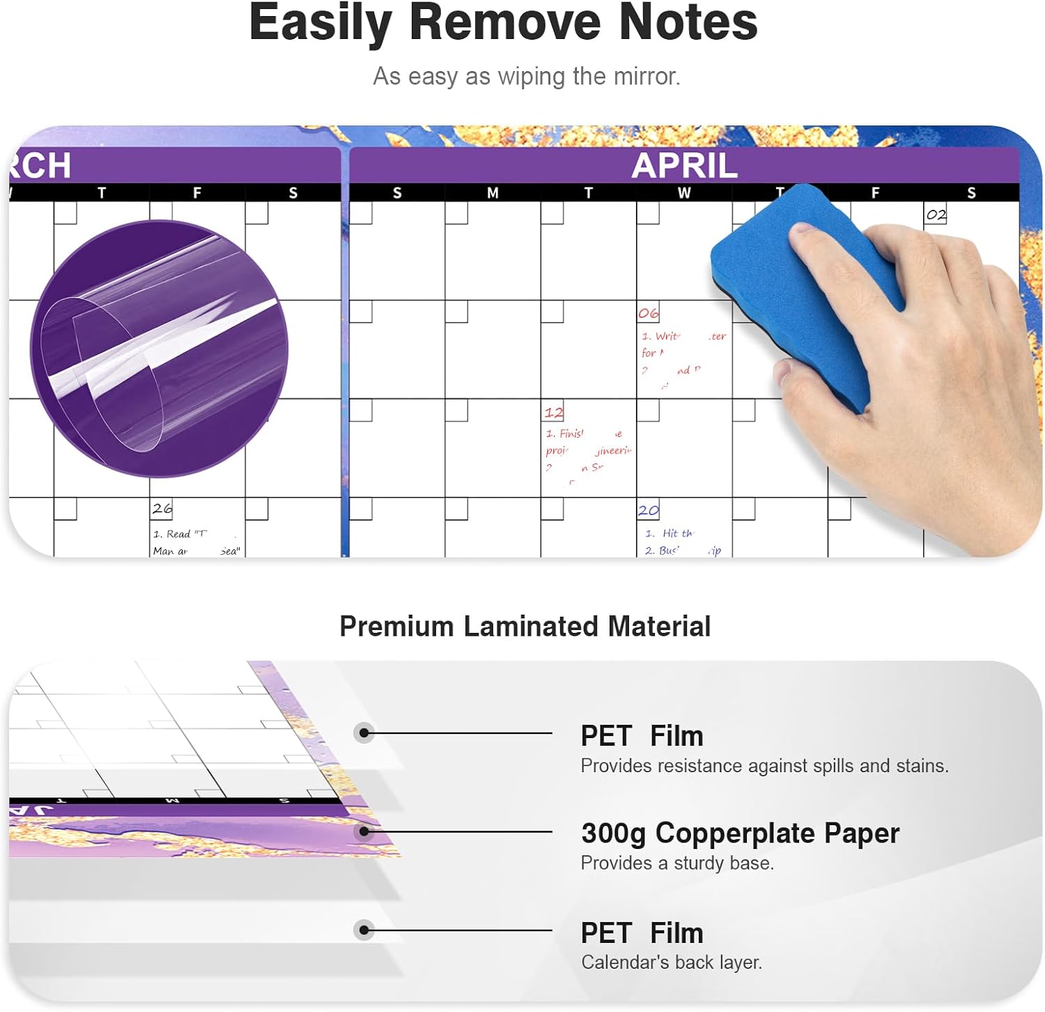 - ⨠Dry Erase Wall Calendar : is made of PET Film and 300 grams Copperplate Paper, providing a durable surface that resists scratches and smudges, while the sturdy Copperplate Paper backing keeps it in place without curling.