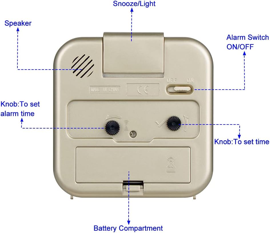 - Snooze and Light Functionโ Snooze and light button locates on easy-to-find top place. Hold button down for 5 minutes snooze or to light up the clock face on demand to see the dial momentarily in the darkness.