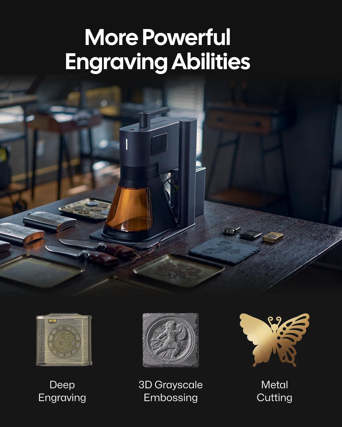 - 20W Dual Laser: 10X Speed & 0.0027mm Precision. Cut/engrave metals (gold, steel, etc.) and non-metals (wood, leather, etc.) at 10,000mm/s. Achieve 8K details with 2x higher accuracy (0.0027mm) vs similar engravers.