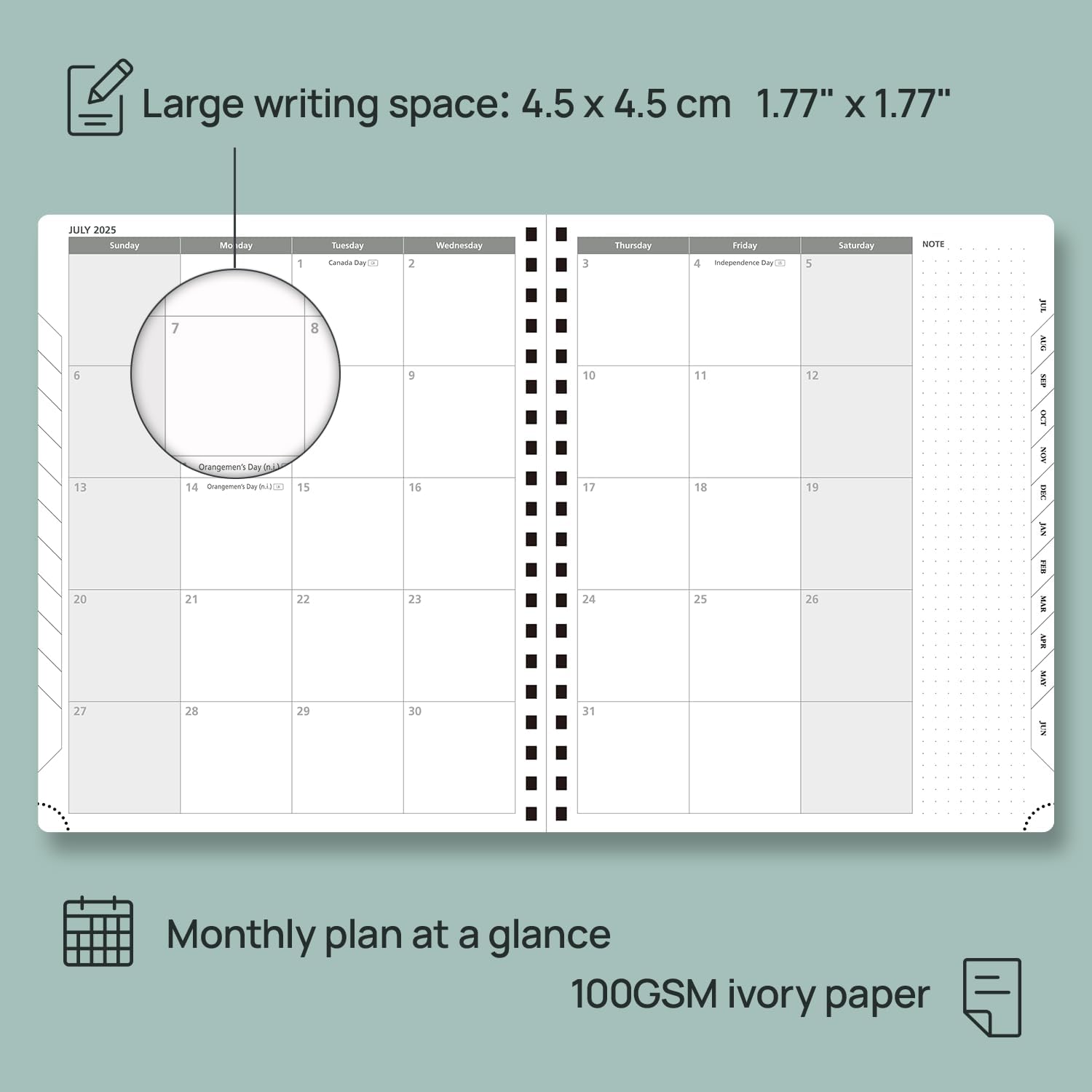 • QUICK SEARCH FUNCTION: Monthly tabs allow you to quickly browse and locate the current day. Besides, Tear-Off Corners and Bookmark Ribbons are added to mark any wanted page of your choice.