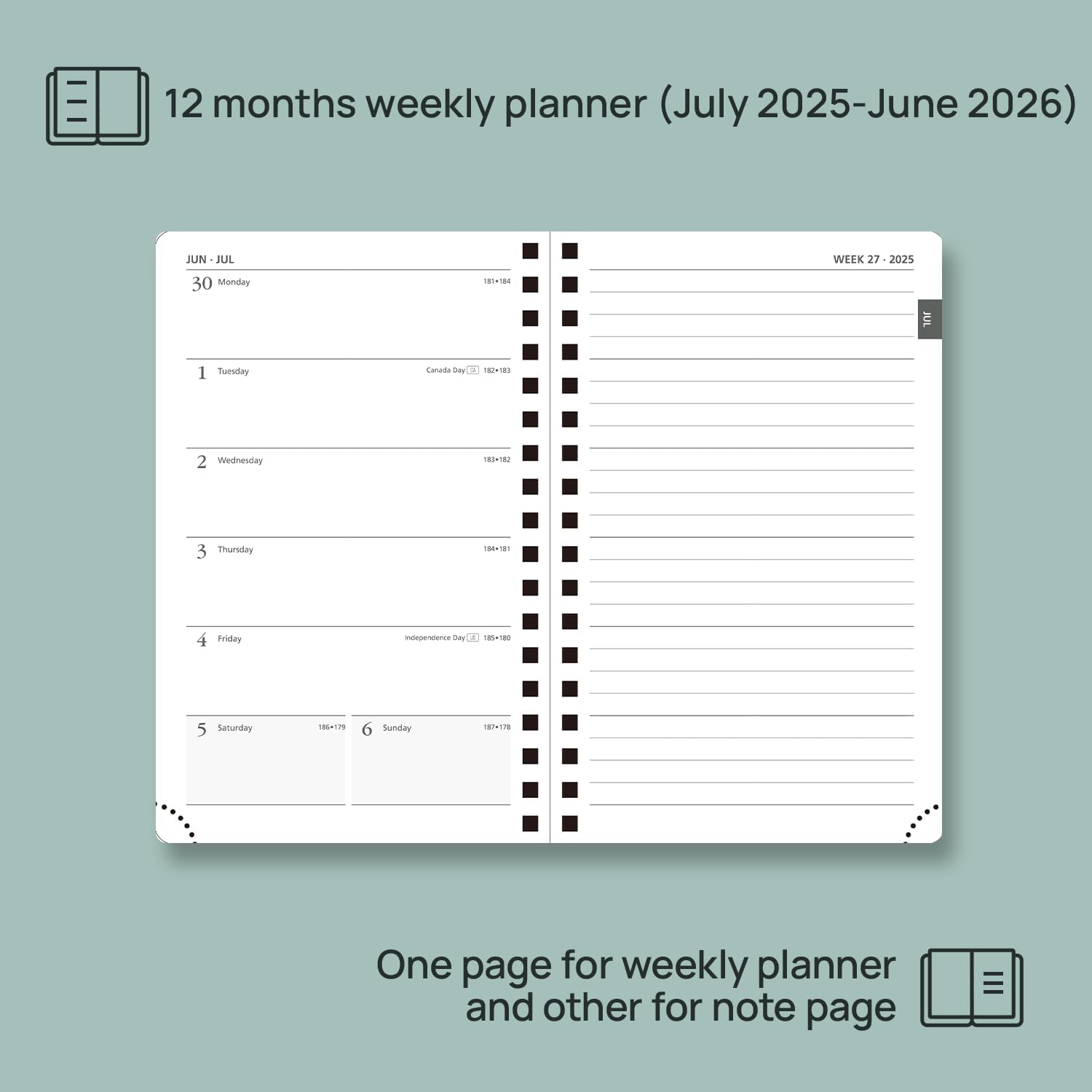 - ONE PAGE PER WEEK & HORIZONTAL LINE PAGE: Measuring 4''x 6.25'', this weekly planner (Jul.25 - Jun. 26) is ensured with a generous weekly page layout and line pages.
