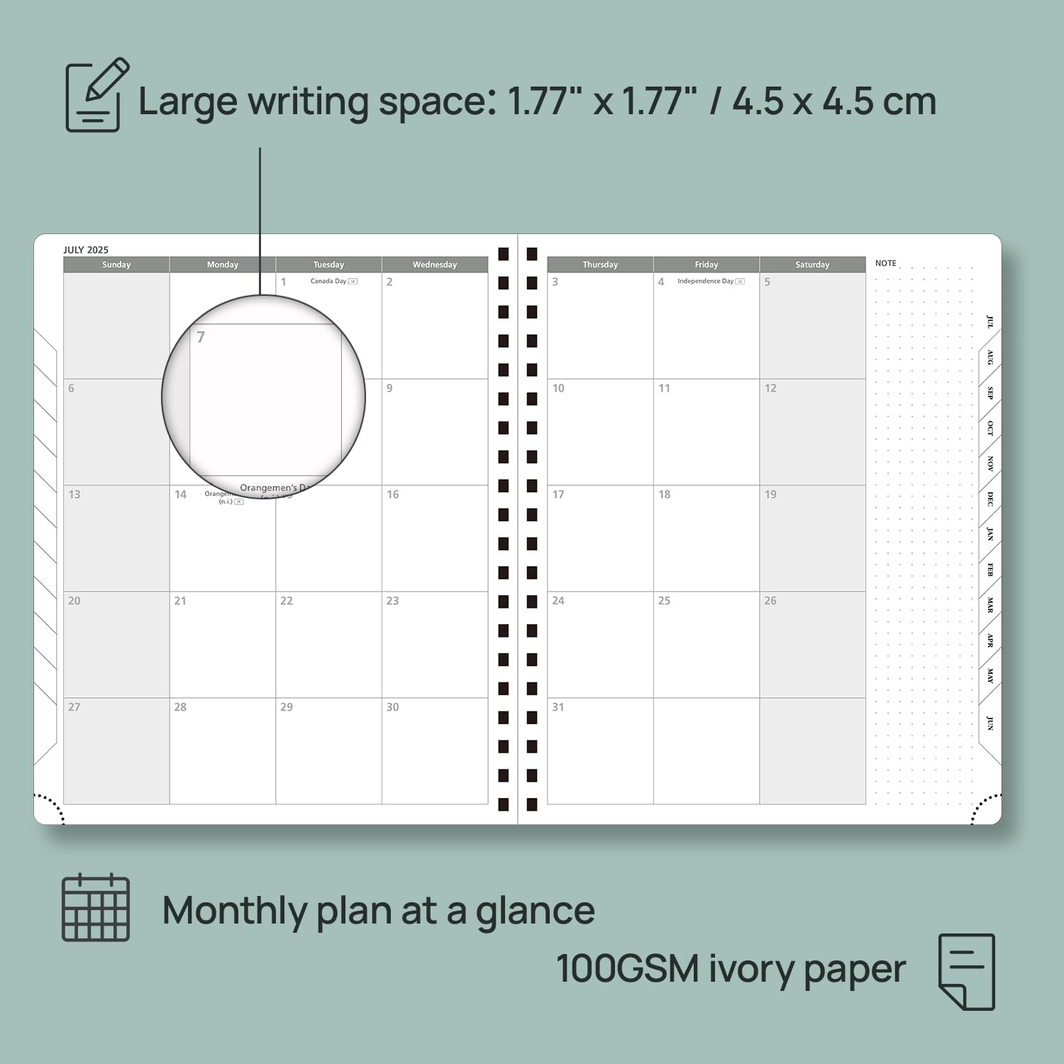 - EXTRA FUNCTION PAGES - Includes a 2025-2026 Yearly Overview, Holiday & Calendar, Monthly Expenses, Contact & Password pages, and 7 dotted notes pages for detailed jotting.