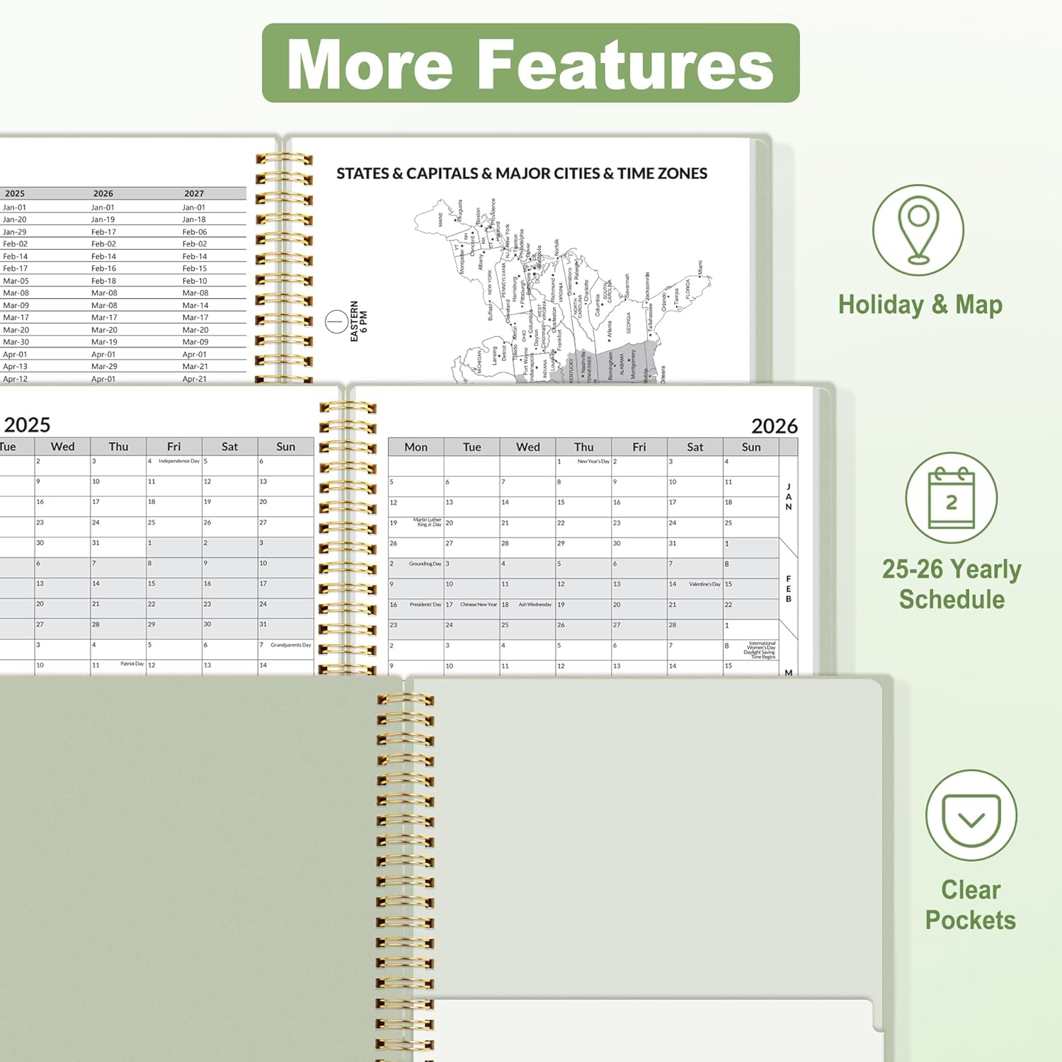 • 2025-2026 Professional Planner: Cover from July 2025 to June 2026, Features 12 months of weekly and monthly pages, 2 additional monthly pages (May 2025 - June 2025) are included for all your planning and scheduling needs, with Lay-flat capability and measures 8.5" x 11".