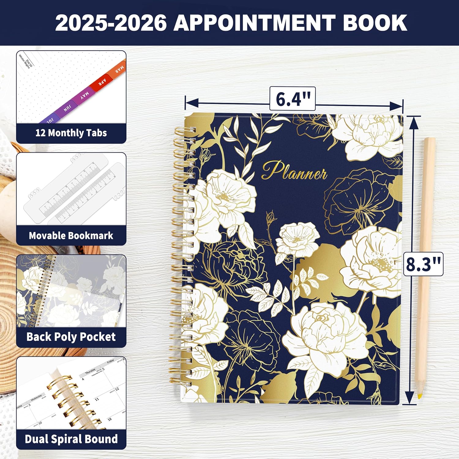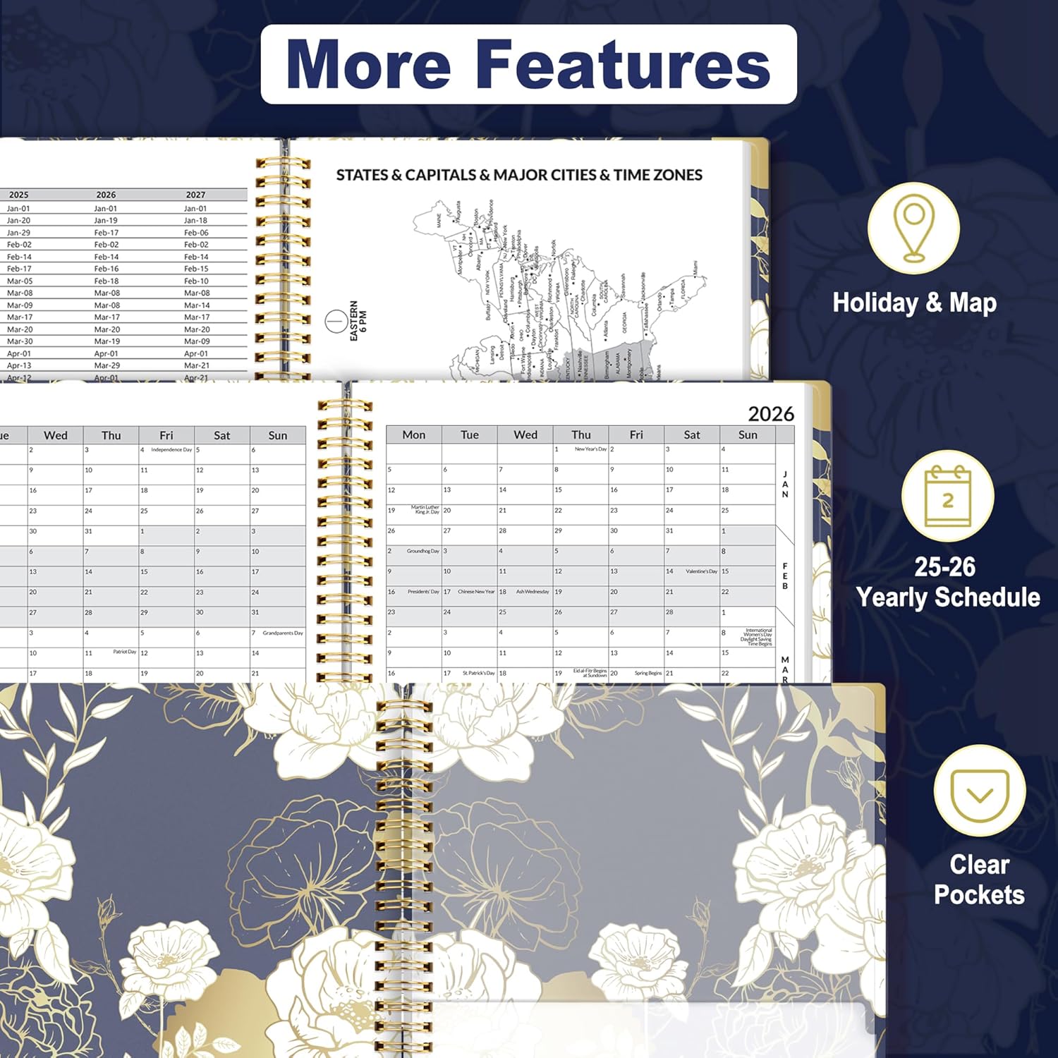 • 2025-2026 Professional Planner: Cover from July 2025 to June 2026, Features 12 months of weekly and monthly pages, 2 additional monthly pages (May 2025 - June 2025) are included for all your planning and scheduling needs, with Lay-flat capability and measures 6.4" x 8.3".