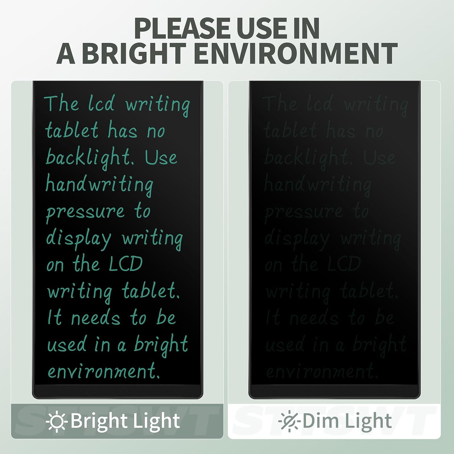 - Easy To Use: LCD writing tablet with clear and lock function is reusable; The clear button of the writing tablet can clear the screen content instantly, when the lock button is turned off; Open the lock screen button to avoid accidental deletion of wrote message; You can reuse it instead of paper