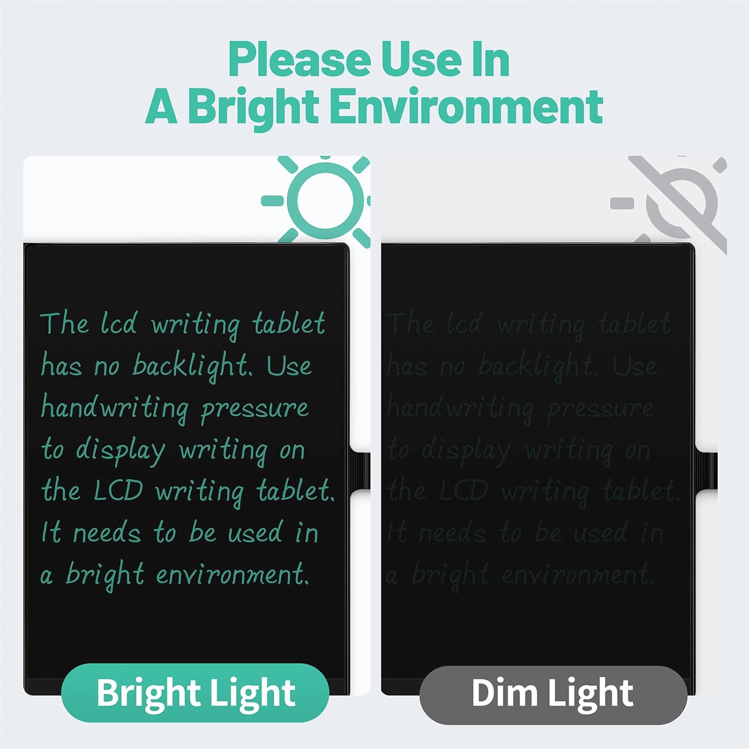 - Eye Protection: The writing tablet features pressure sensitive technology, no blue light and no radiation; It is safe to use for a long time without affecting the eyes; The handwriting pen can create a blue-green color handwriting lines, which are clear and eye-catching; And there's no fingerprints or press mark left on the screen, giving you a better writing experience