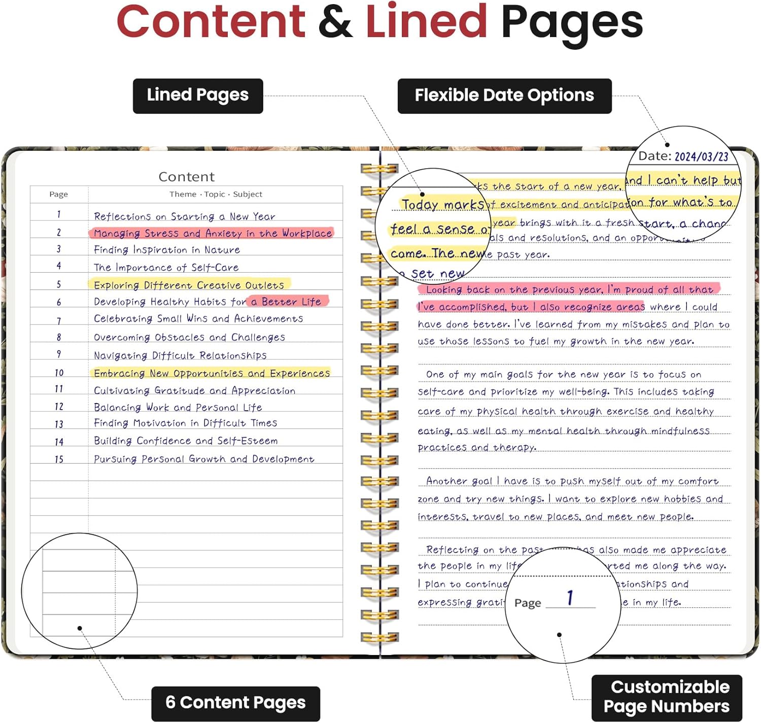 - Organized and Functional Design: With 140 lined pages and a 6-page blank table of contents, our notebook offers ample space for note-taking and easy referencing. An inner pocket keeps miscellaneous items secure, and an elastic closure band ensures the notebook stays closed when not in use.