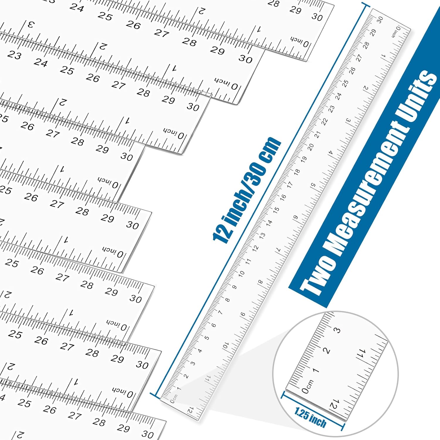 - Ruler 12 Inch: Dual side measuring ruler, centimeter and millimeter scale is on one edge of the ruler, and inch scale is on the other edge. With the clear mathematics ruler, you can measure an object easily.