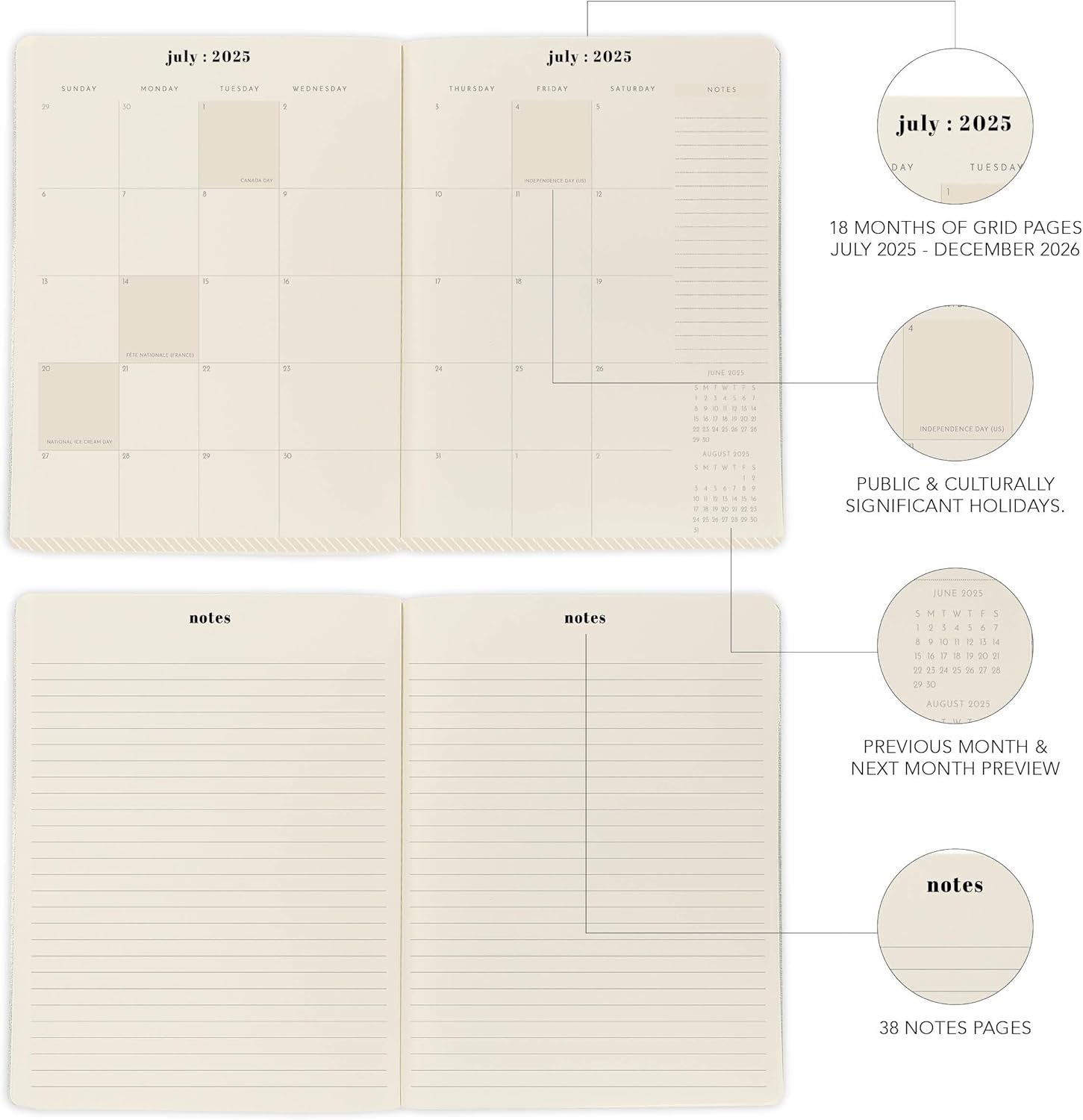 • 18-MONTH CALENDAR: Covers July 2025 through December 2026, featuring monthly views that show past and future month references for easy planning; includes public and culturally significant holidays to keep you informed