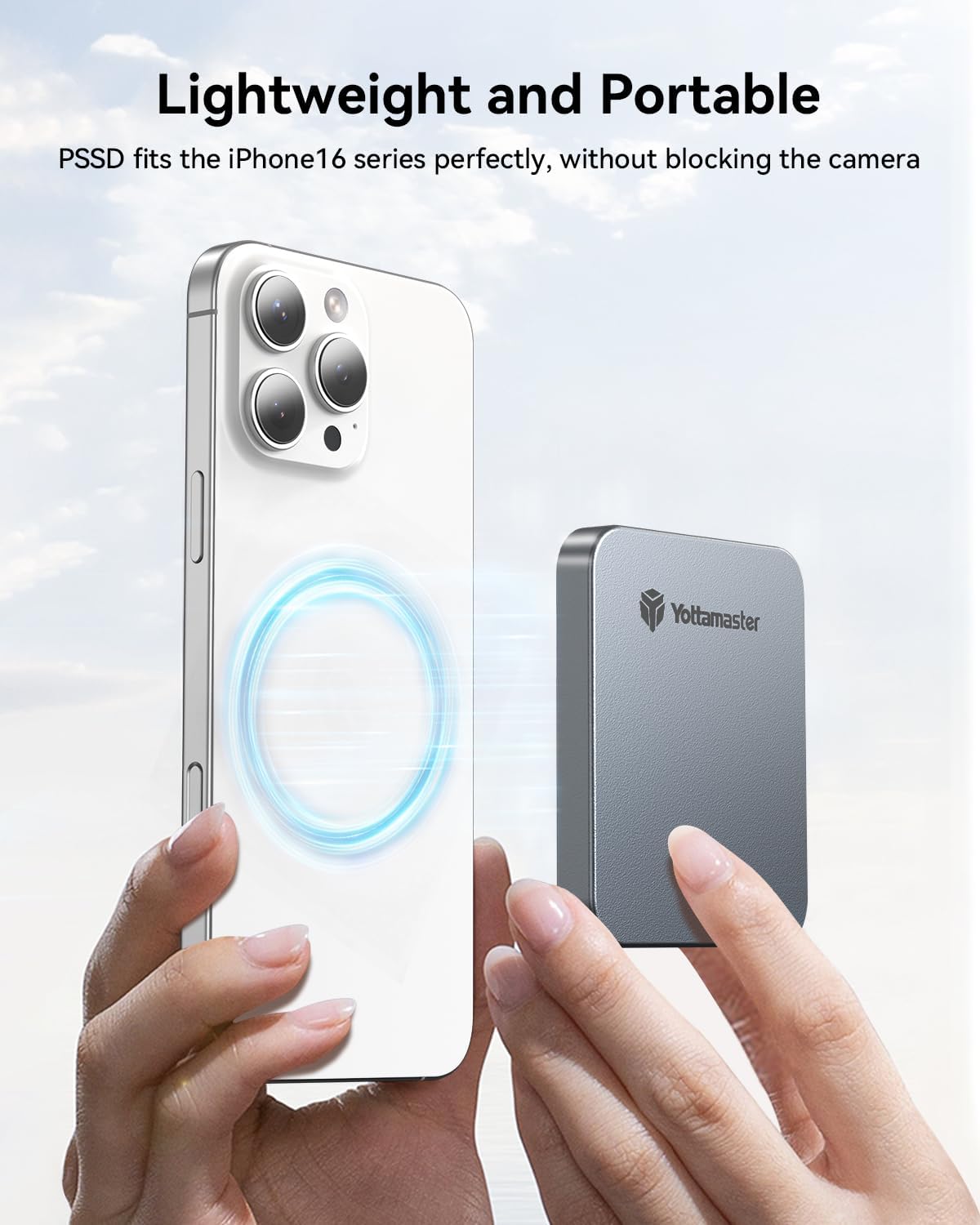 - 【Magnetic Design】PSSD can be directly attached to iPhones and phone cases with MagSafe support, and it also includes a magnetic ring for attachment to devices and cases without built-in magnets. This makes it the ideal choice for mobile photography enthusiasts, allowing you to store a large number of high-resolution photos and videos anytime, anywhere, combining portability and efficiency perfectly.!!Note: When using the PSSD with a phone case, it is recommended to use the included magnetic ring to prevent detachment due to insufficient magnetic force.