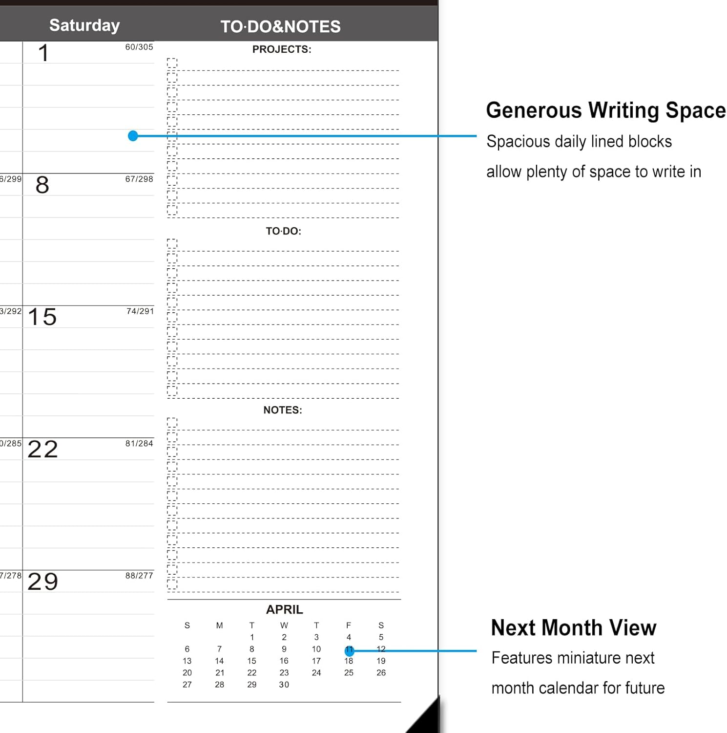 - Stay Organized & Improve Productivity - Marked with all federal holidays & some observances, there is mini next-month calendar for preview. Write down daily schedules, appointments, meetings and anniversaries on ruled daily blocks. TOWWI desktop calendar helps you manage life efficiently