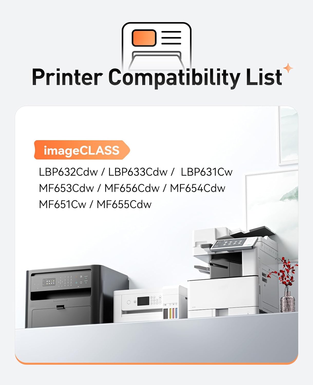 • Compatible Devices : Compatible for Canon imageCLASS LBP632Cdw LBP633Cdw LBP631Cw MF653Cdw MF656Cdw MF654Cdw MF651Cw MF655Cdw laser printers. Compatible for Canon imageCLASS LBP632Cdw LBP633Cdw LBP631Cw MF653Cdw MF656Cdw MF654Cdw MF651Cw MF655Cdw laser printers.