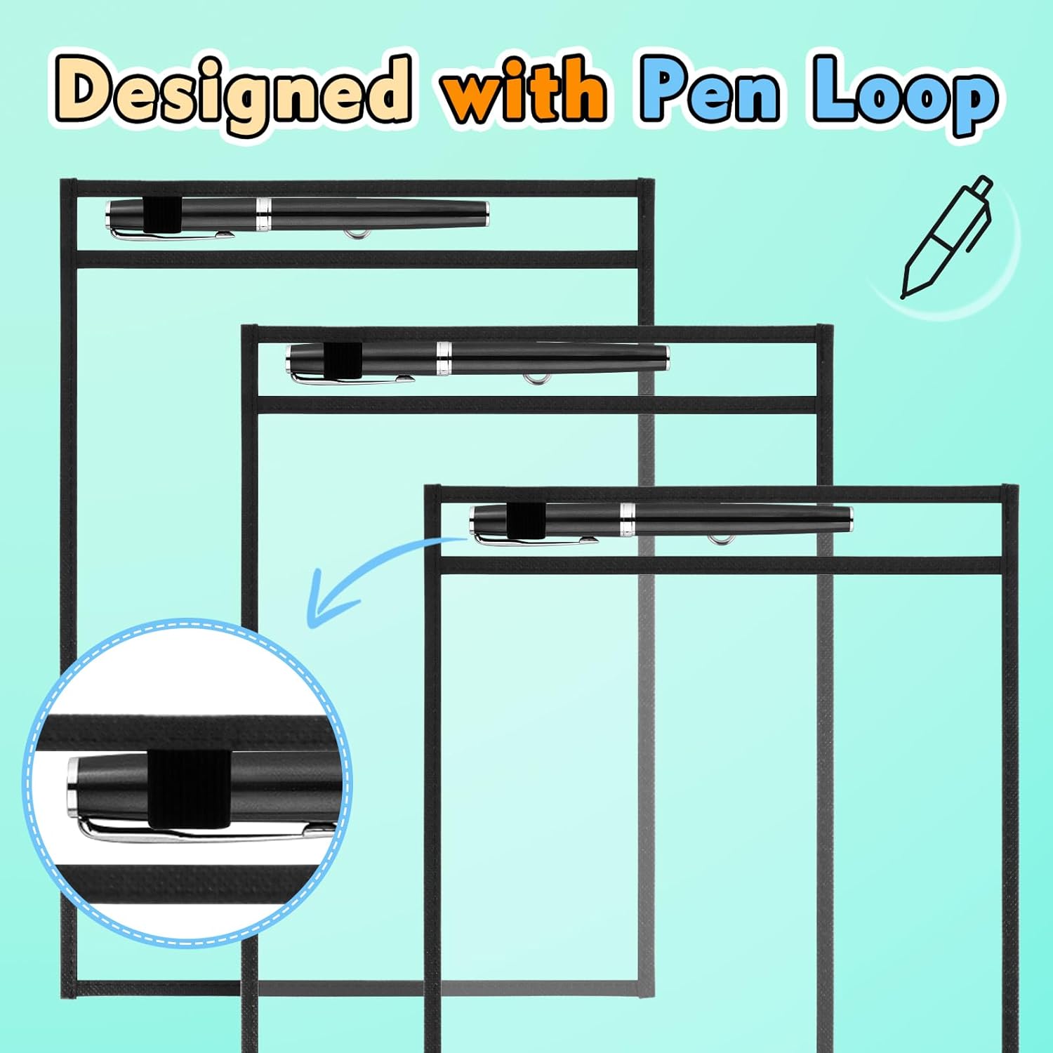• Pre-drilled hole convenient suspension, one pen loop is on the top of dry erase pocket sleeves. Attention: we don't provide rings.