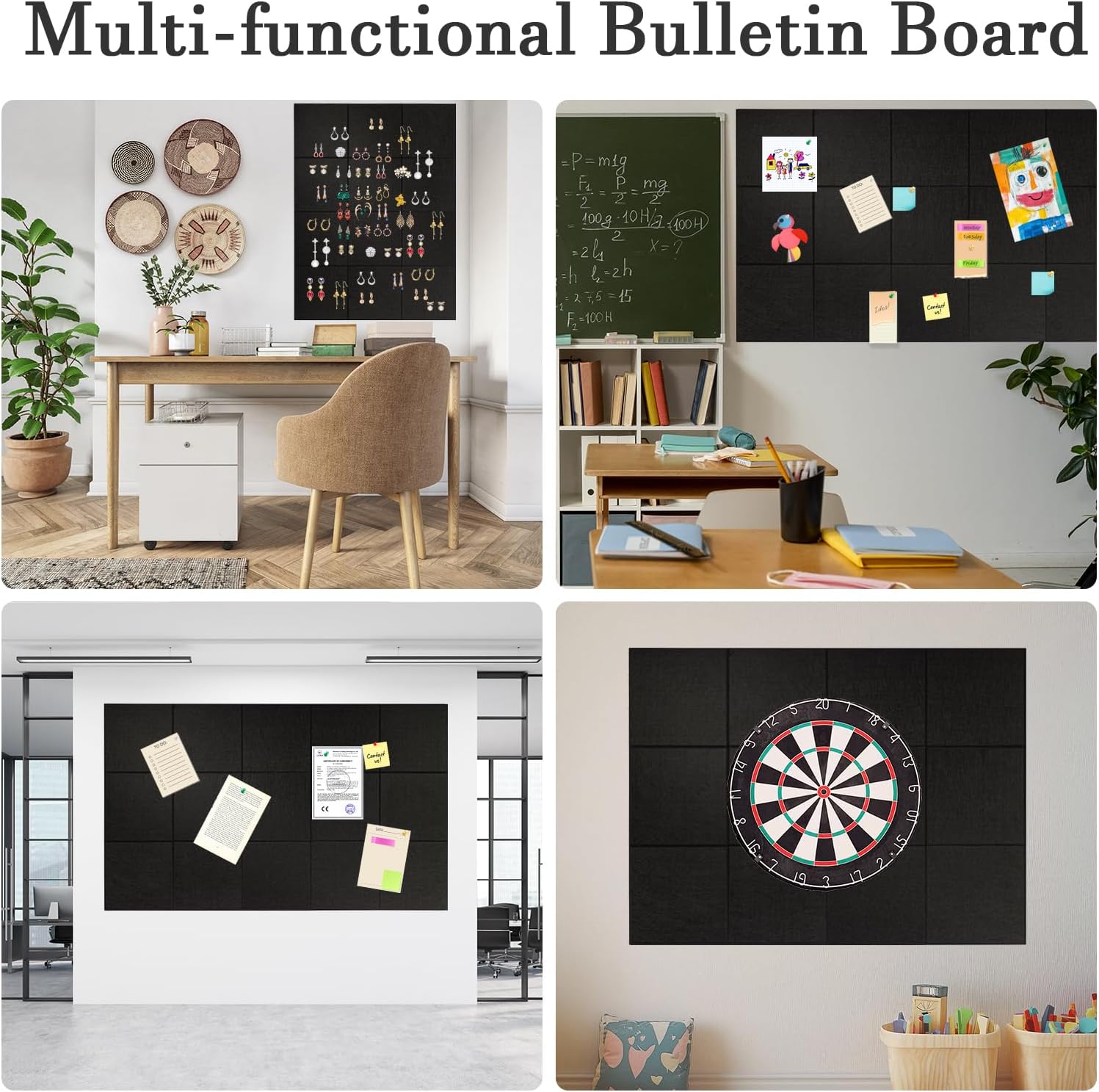 Large Cork Board Alternative, 12 Pack Felt Board with Safe Removable Adhesive Tabs Felt Wall Tiles, Large Cork Boards for Walls, Cork Board for Home Office, Pin Boards for Walls, Black