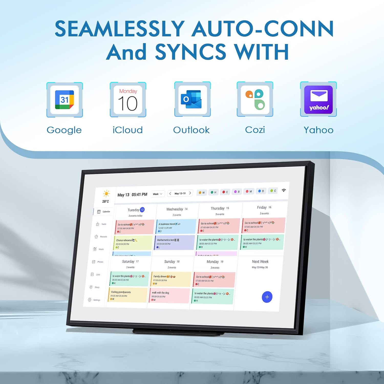 - ❤Sync & Integrate: Smart calendar digital wall can seamlessly integrate with your favorite apps. Whether it’s your email, task manager, or project management tool, keep everything connected for a smooth workflow- gift for moms and grandparents.