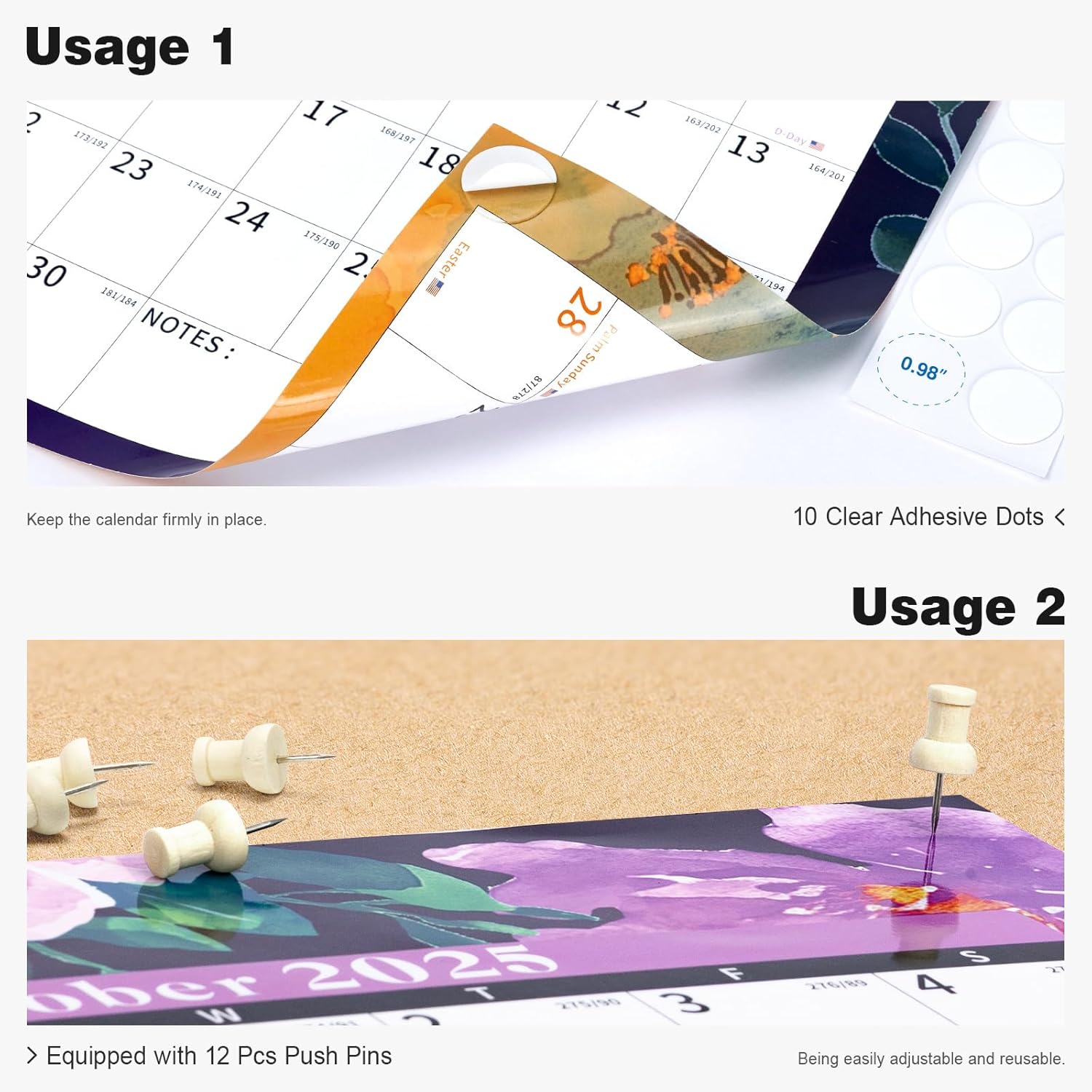 - ⨠Laminated Calendar with Dates: Waterproof wall calendar comes with a mini eraser, four dry-erase markers, 12 push pins, and 10 transparent round stickers. 12 months calendar covers the time range from July 2025 to June 2027, making it perfect for long-term use.