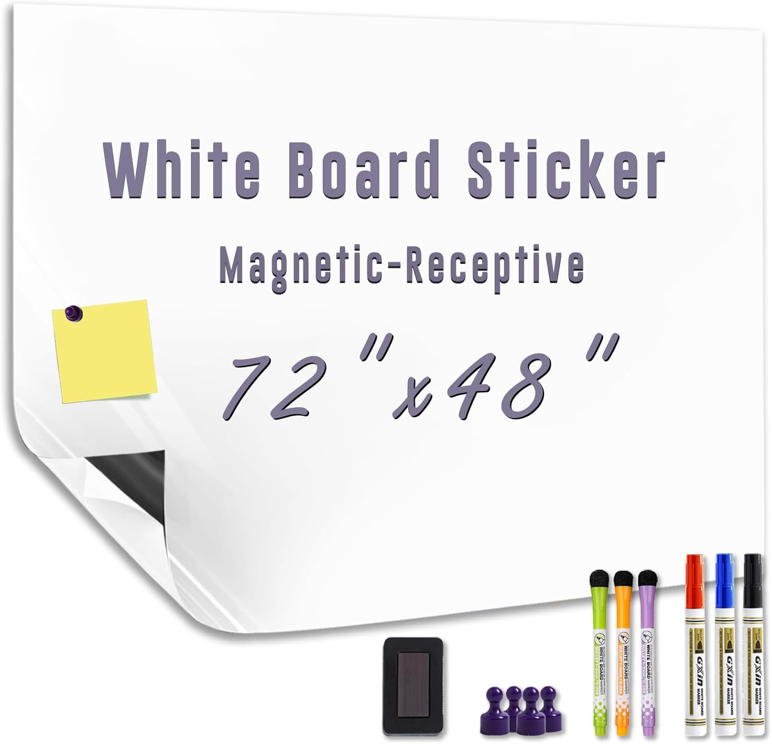 Large Magnetic Whiteboard for Wall - Adhesive Backing 72" x 48" Dry Erase Board White Board Sheet for Conference Room Office Home Include Starter Kit