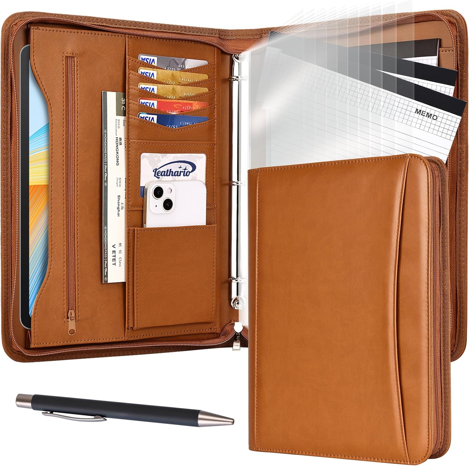 - EFFORTLESS ORGANIZATION WITH 3-RING BINDER: Stay organized with the built-in 3-ring binder, pen holder, phone pocket, and card slots. This leather Padfolio is designed for efficient file management and easy access during meetings or business trips