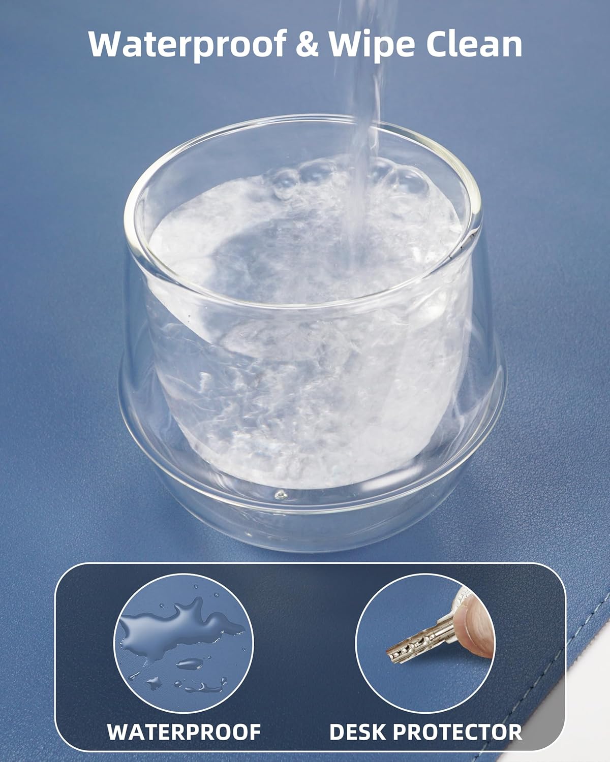 - DESK PROTECTOR:Triple-Threat Protection + Workspace:Engineered to shield desktops from scratches, coffee rings (heat-resistant to 212°F), and spills (wipes clean for 24hrs). Reinforced with stealth-matched jet-black stitching that locks in durability. Serves as:Surface can be used as a large mouse pad, comfortable resting surface for your hands while writing, typing, and using the mouse. A must have office or study supplies.