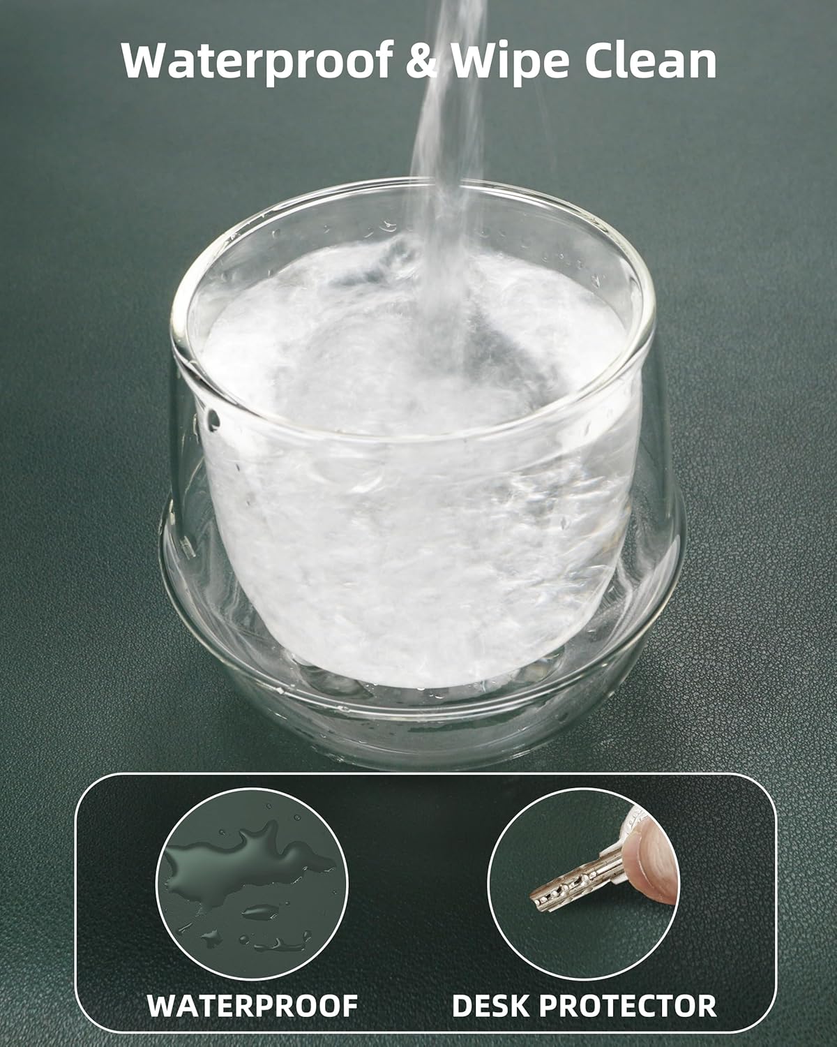 - DESK PROTECTOR:Triple-Threat Protection + Workspace:Engineered to shield desktops from scratches, coffee rings (heat-resistant to 212°F), and spills (wipes clean for 24hrs). Reinforced with stealth-matched jet-black stitching that locks in durability. Serves as:Surface can be used as a large mouse pad, comfortable resting surface for your hands while writing, typing, and using the mouse. A must have office or study supplies.