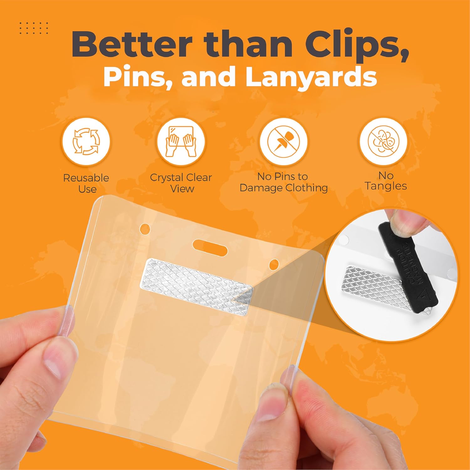 - 【Reusable & Secure Badge Holder】Pre-attached, strong magnets keep your name badge firmly attached without damaging your clothes or requiring pins or clips. Our magnets are strong enough for thicker dress suits & professional clothing compared to weaker competitor magnets.