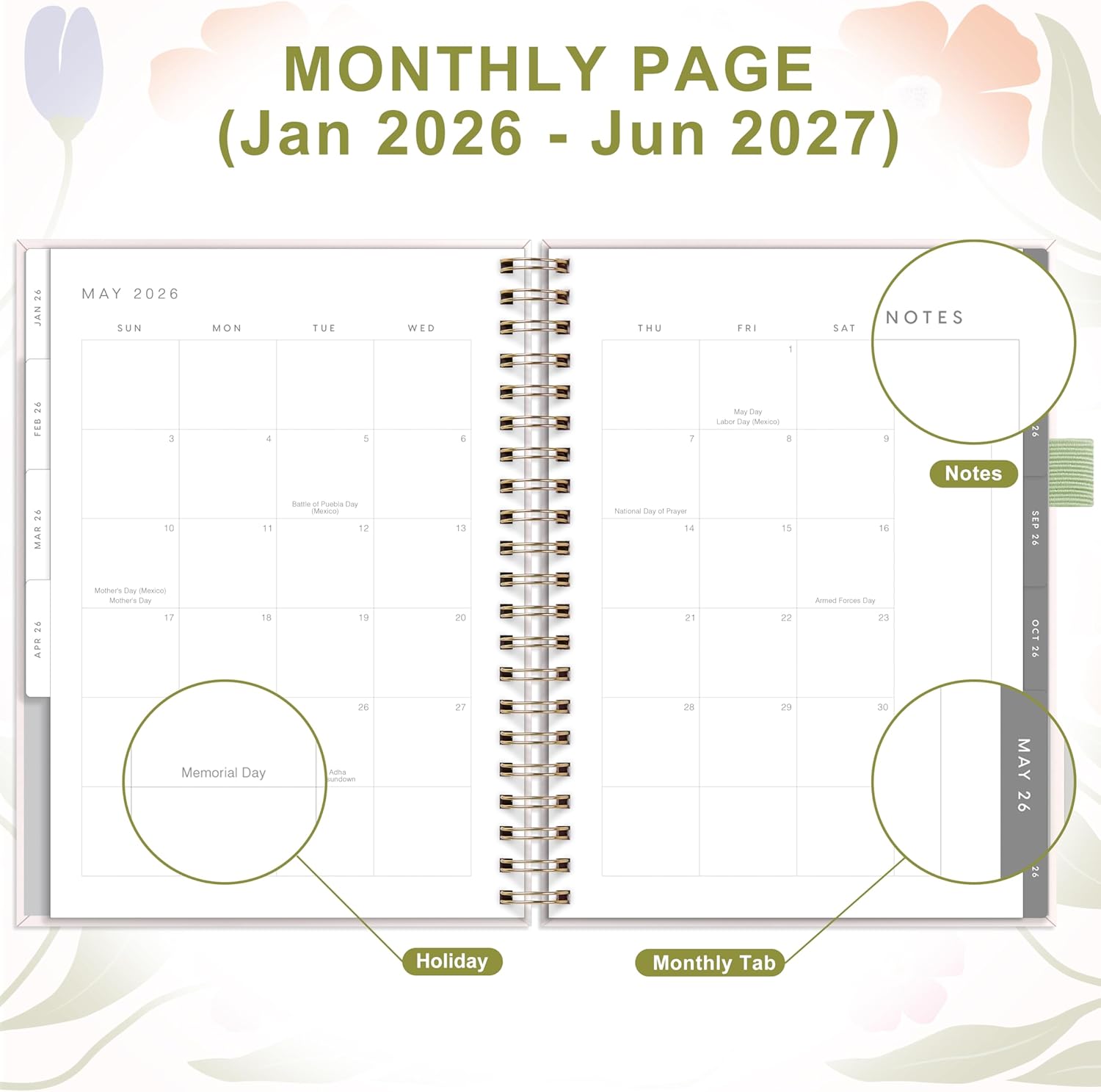 - 18-MONTH MONTHLY PLANNER: This 18-month monthly calendar planner (8.5" X 11"), covering from January 2026 to June 2027, has monthly & weekly planning pages for long-term planning.