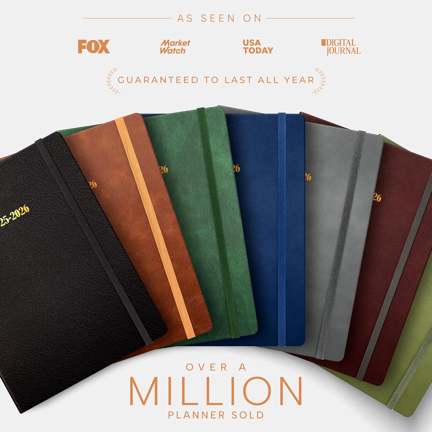 Ensight 2025-2026 HARDCOVER Leather Planner Weekly & Monthly - 6.5x8.5 Inches - Academic Planner Business Personal or Student - Pen Holder, Thick Paper, July 2025 - June 2026 (Brown)