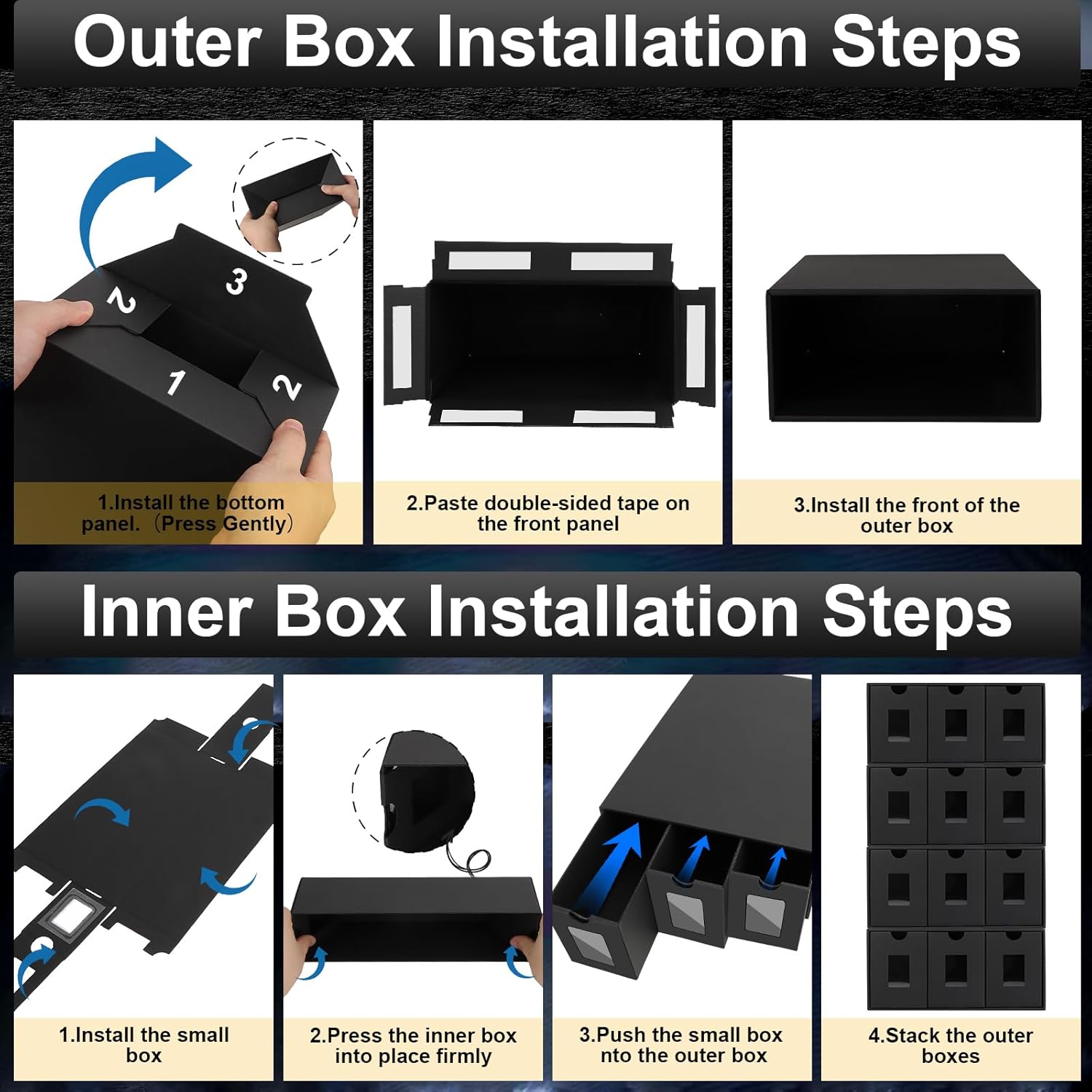 • 【Quick installation, easy assembly】: The trading card storage comes with a detailed graphic installation guide, allowing you to complete the assembly quickly. The detachable design supports free combination to create an exclusive card storage system. Comes with double-sided tape and self-adhesive points to make your card box more secure and safer to install, meeting the needs of large-scale trading card sorting!