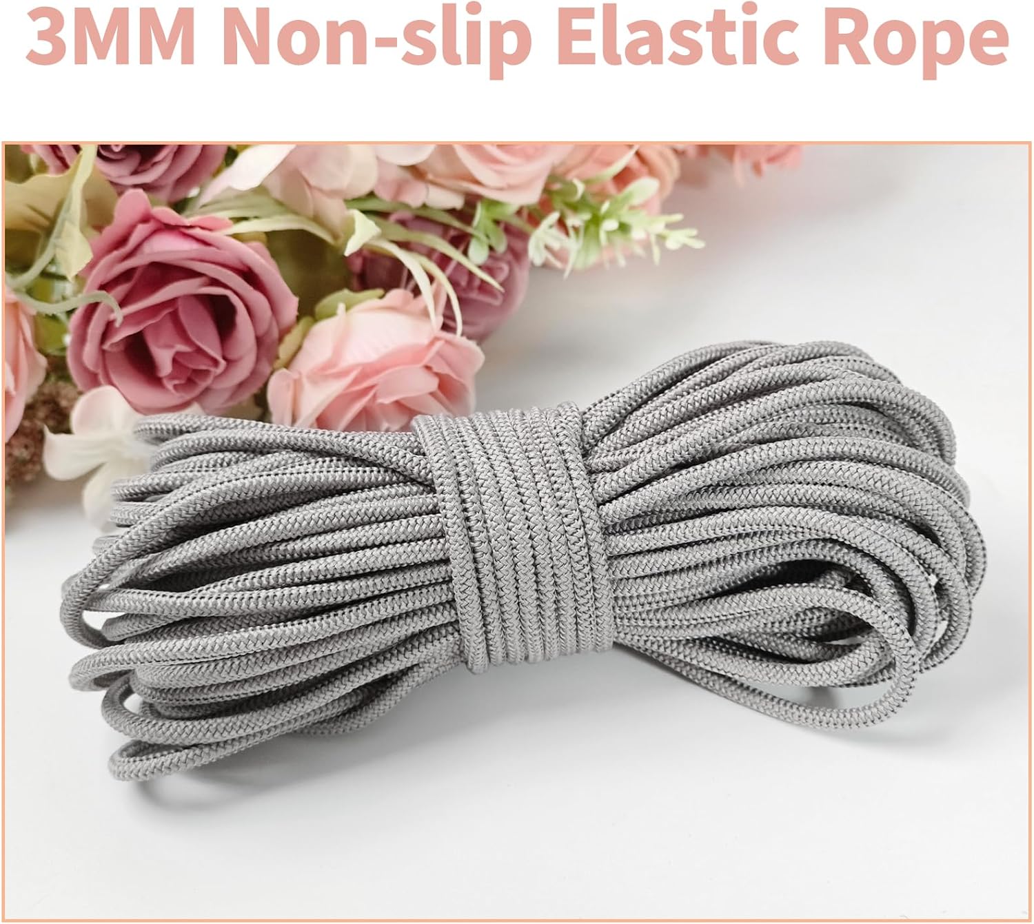 1/8 inch Gray Non-Slip Elastic Cord -3mm 15 Yards Soft Elastic Cord Stretch String Braided Thread for Sports Gear, DIY Crafts, Hair Bands, Shoelaces,Apparel Making & Camping Tie Down