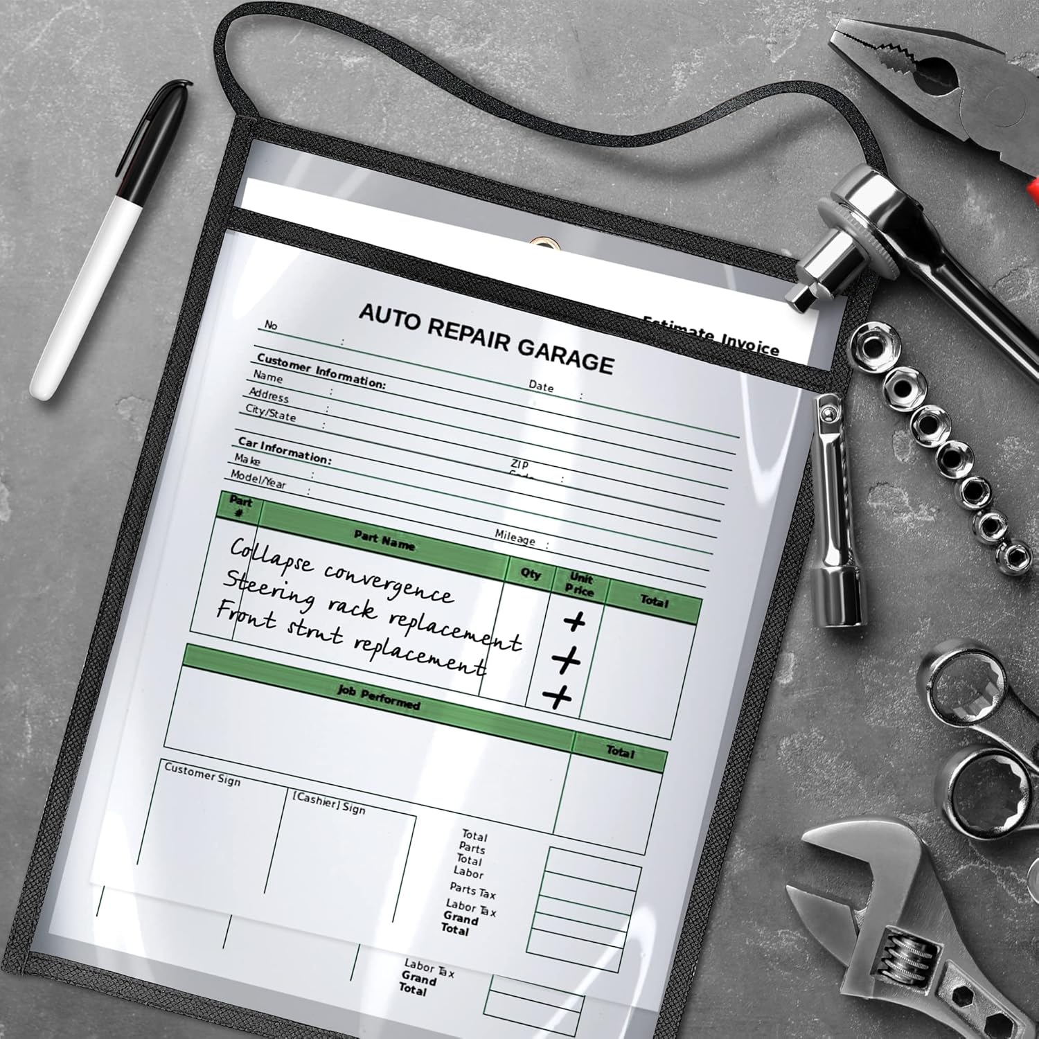 - DOUBLE-SIDED PLASTIC SLEEVES FOR PAPER - Make work processes more convenient with work order sleeves. Clear material of shop ticket holders 9x12 is suitable for both single and double-sided worksheets. Save money with repair order sleeves PACK of 30