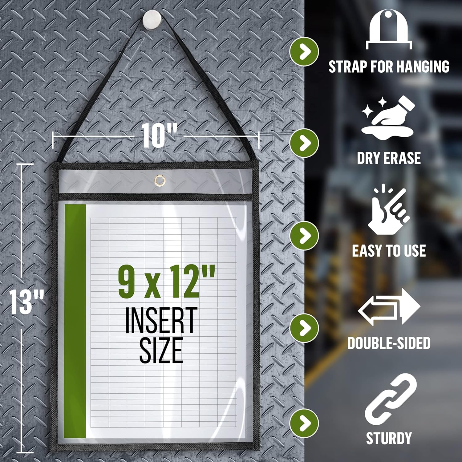 - PROTECT & ORGANIZE DOCS - 9x12 plastic sleeves are water & dust resistant, it is perfect for displaying production schedules, inventory cards, work orders in industrial environmental DRY-ERASE surface is great for equipment inspections or check lists