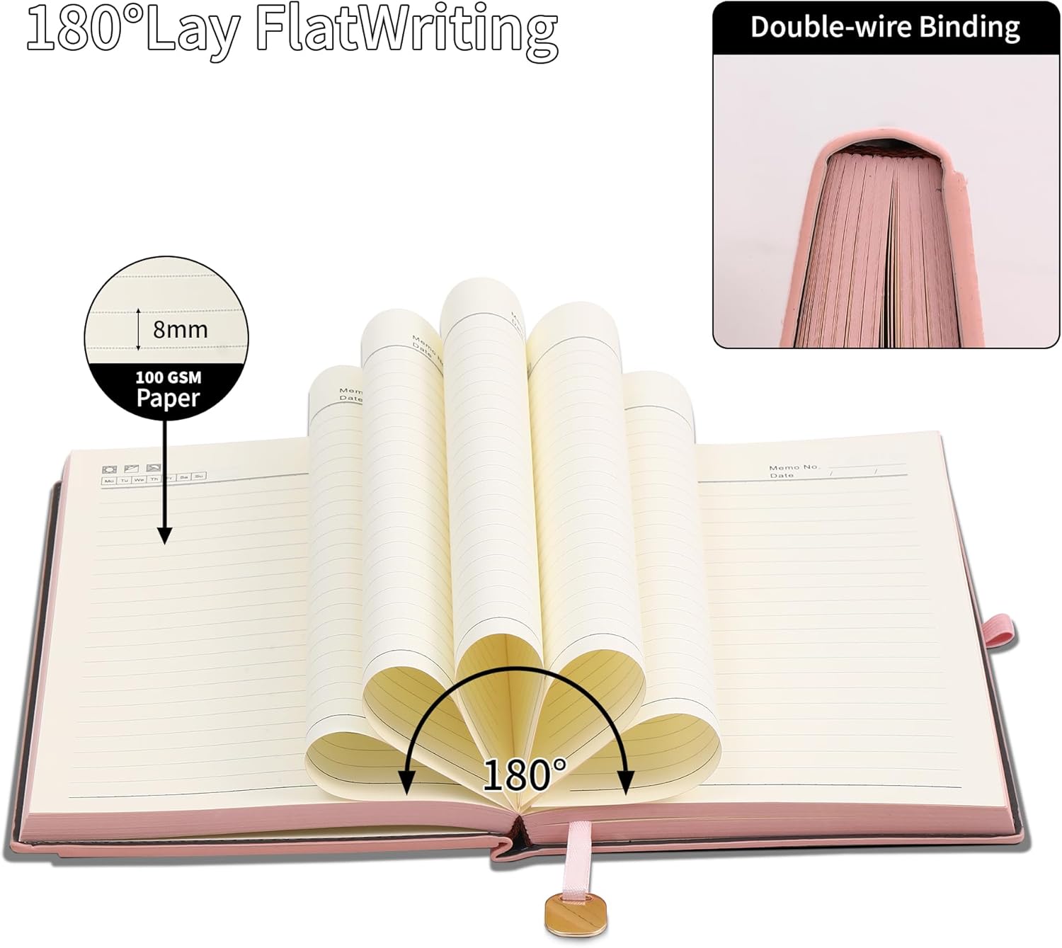 - Premium Vegan Leather Cover: The pink journal notebook is crafted with a faux PU leather, featuring a unique textured hardcover and minimalist design that appeals to both men and women. The pink page edge gives the exquisite journal for women and men a special look. The ribbon bookmark with gold charm help find your detail information quickly