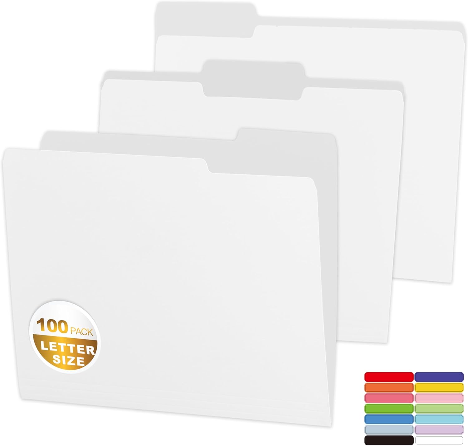 100 Packs Colored File Folders,White File Folders,Two Tone Color File Folder 8.5 x 11 Inch,1/3 Cut Tabs Letter Size,Manila File Folders for Office,School and Home,Organization