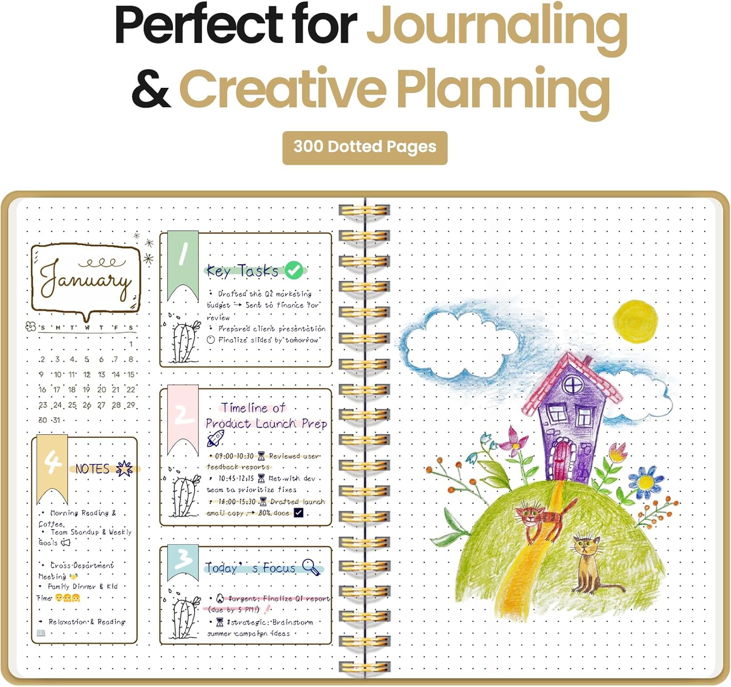 - 300 Pages Dotted Journal: Unleash your creativity with 5mm dot grid pages—ideal for journaling, sketching, planning, or goal tracking. Whether you’re using it as a work notebook, journal for writing, or notebook for school, it fits easily into your daily routine.